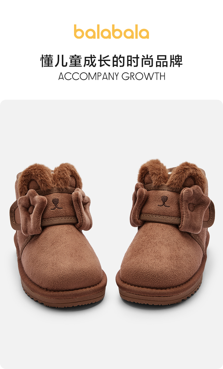 巴拉巴拉童鞋儿童雪地靴加绒加厚棉靴男童棉鞋冬季靴子动物造型萌