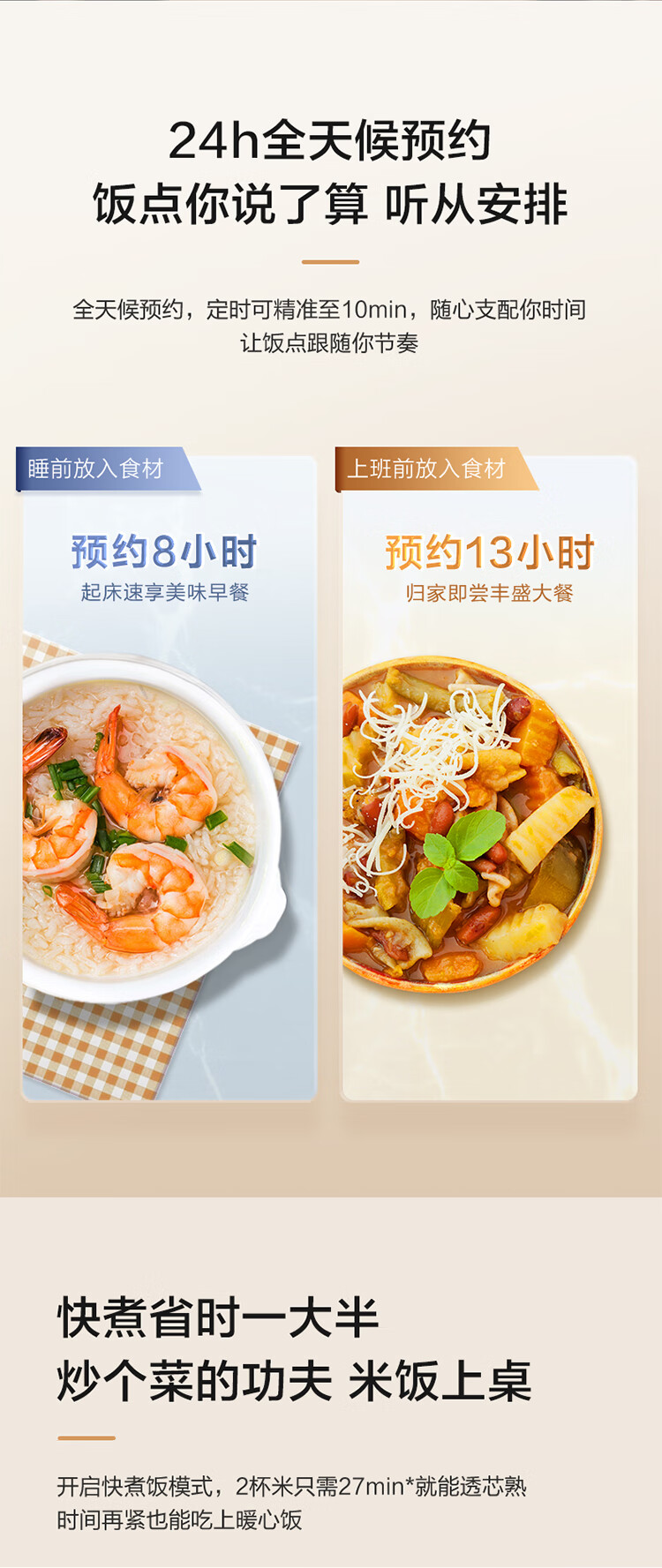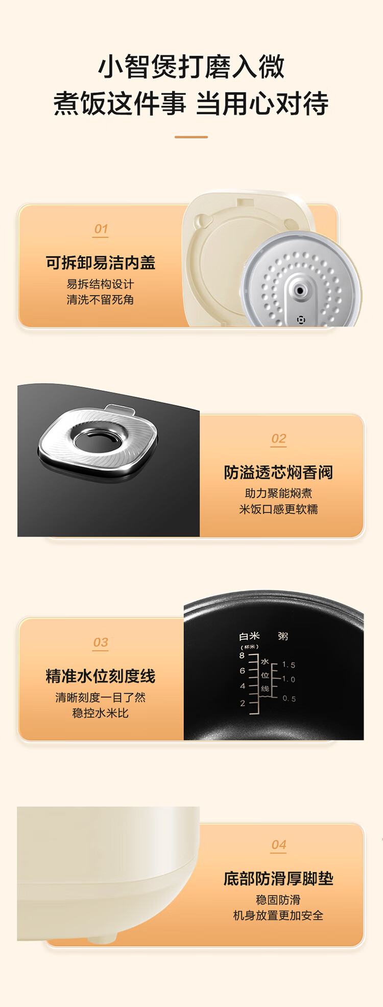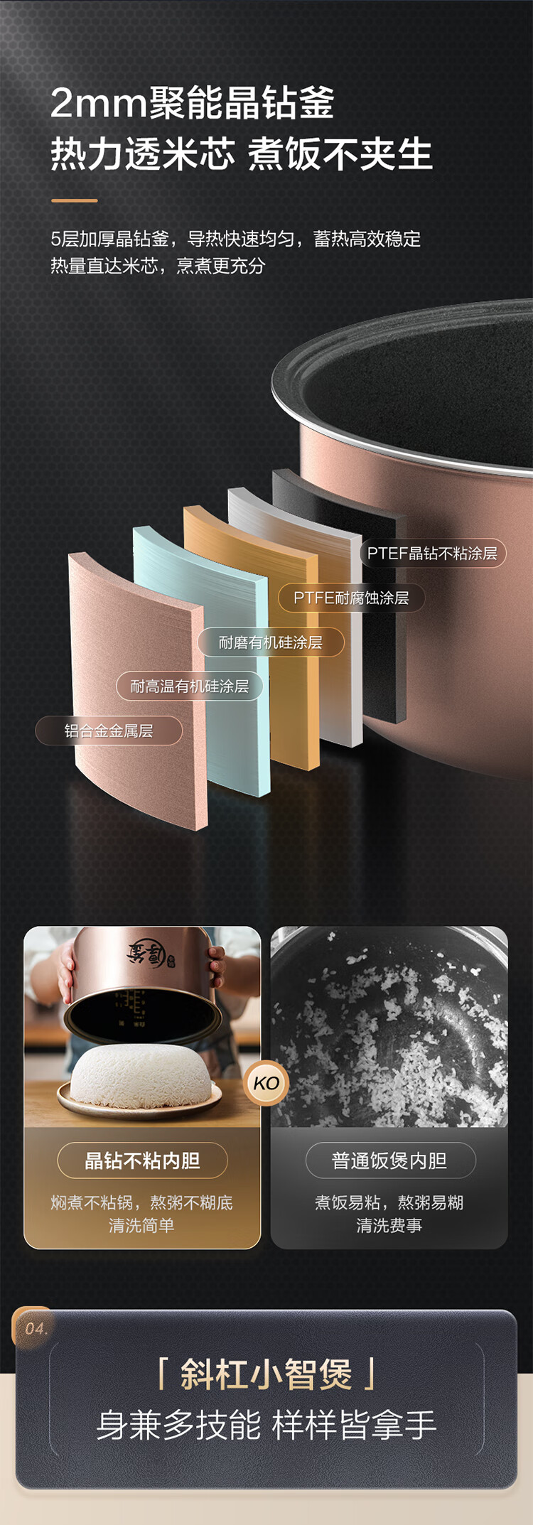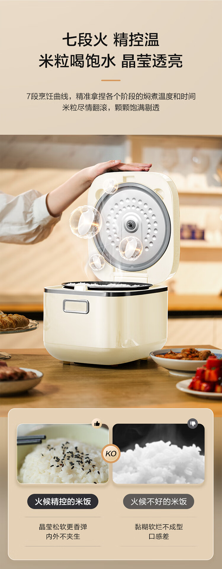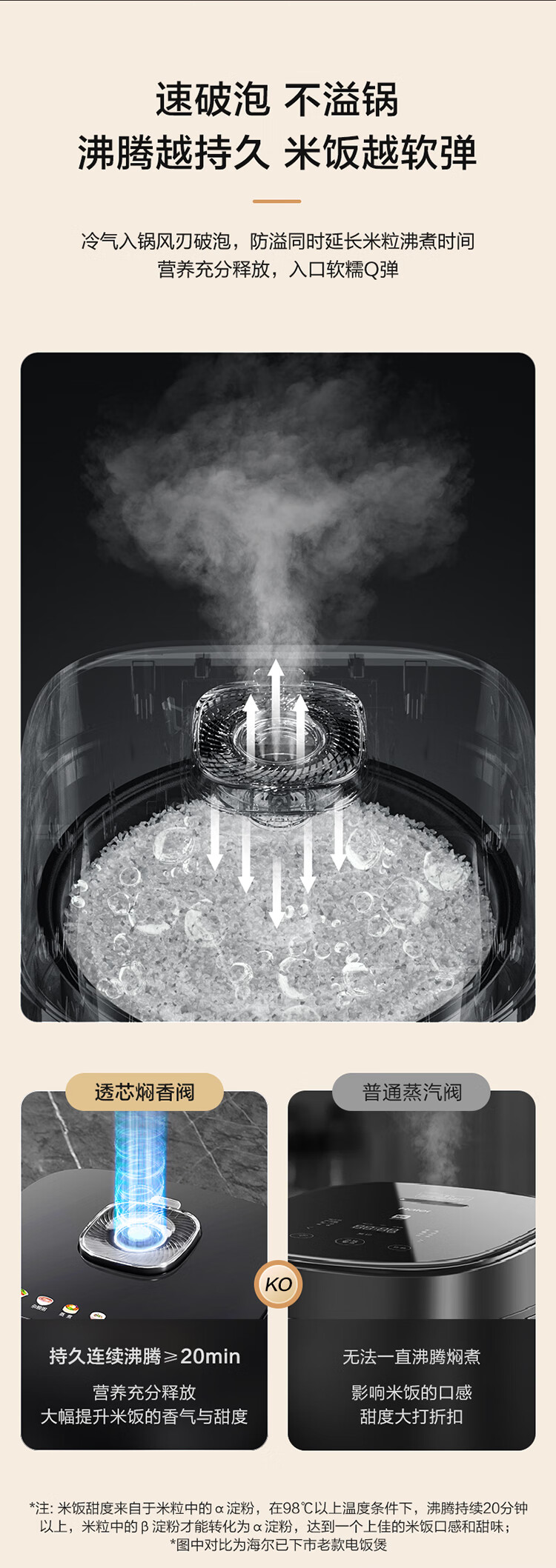 海尔(Haier)电饭煲电饭锅4L晶钻厚釜内胆全息触控屏3-8人多功能家用智能电饭煲HRC-C240ADZ 浅啡米