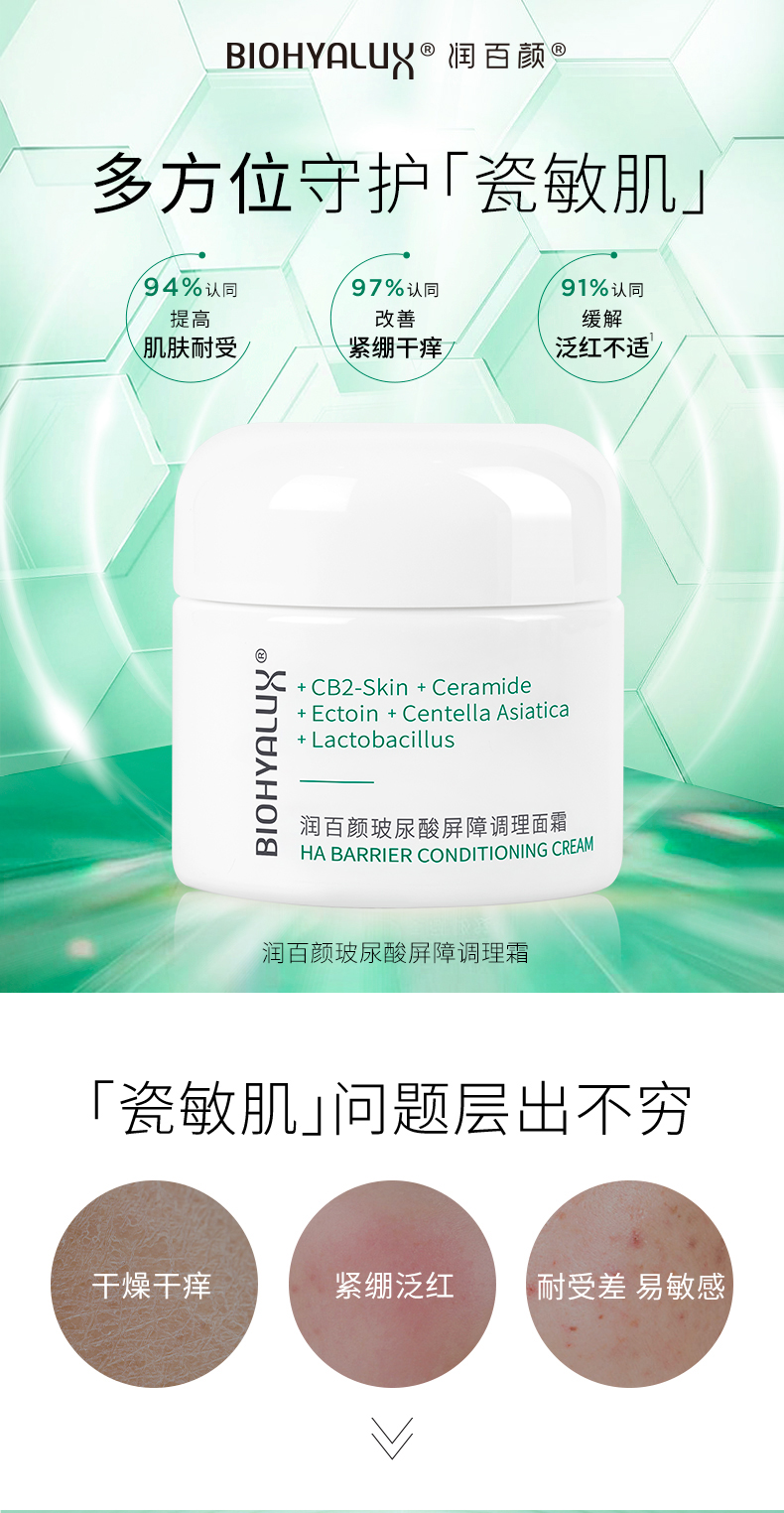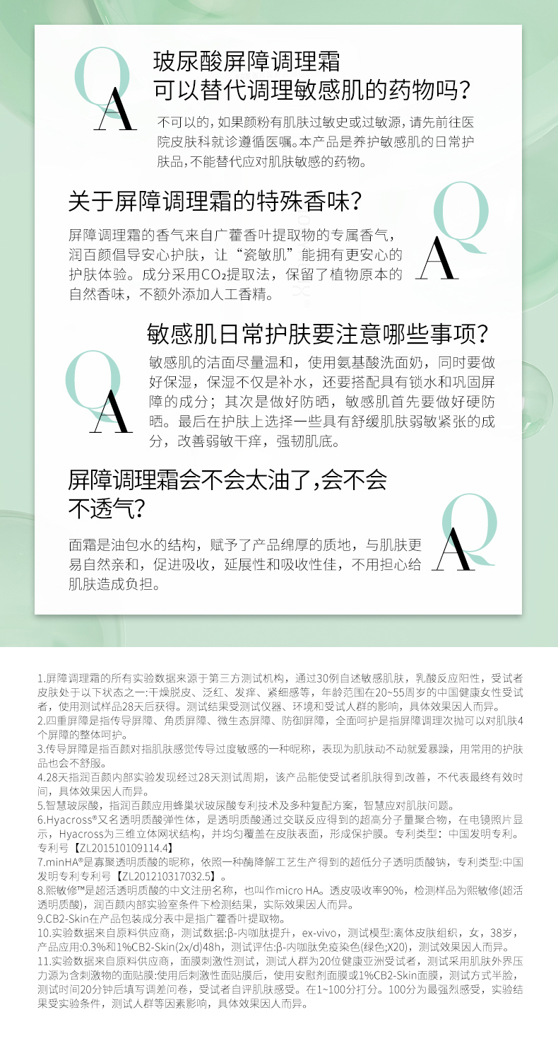 【断货王回归!润百颜白纱布面霜30g/瓶】润百颜玻尿酸屏障调理面霜,四重修复,安抚干敏红