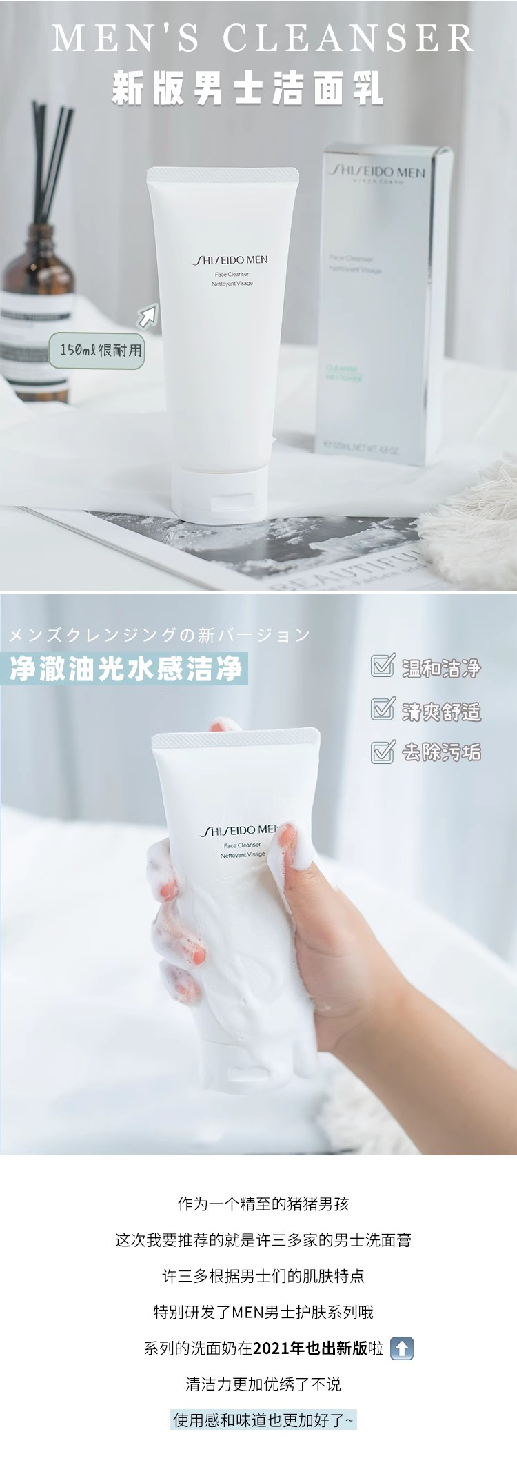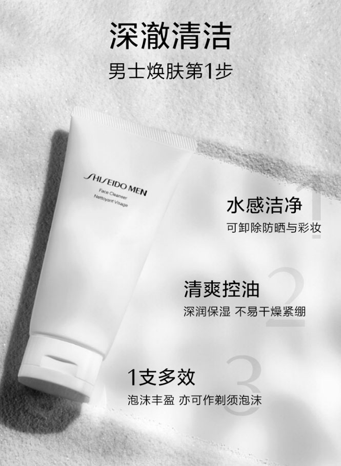资生堂男士洗面奶洁面乳膏清爽控油洁净补水125ml