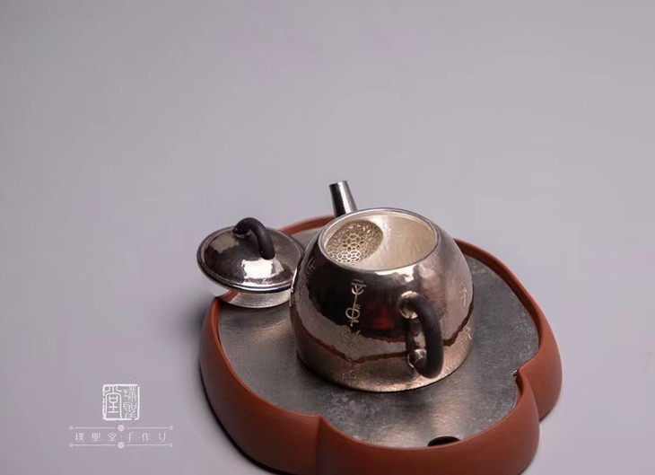 璞聖堂 半瓢古文小壶H170 錾刻青铜器古文字纯银999 日本急须手工泡茶壶