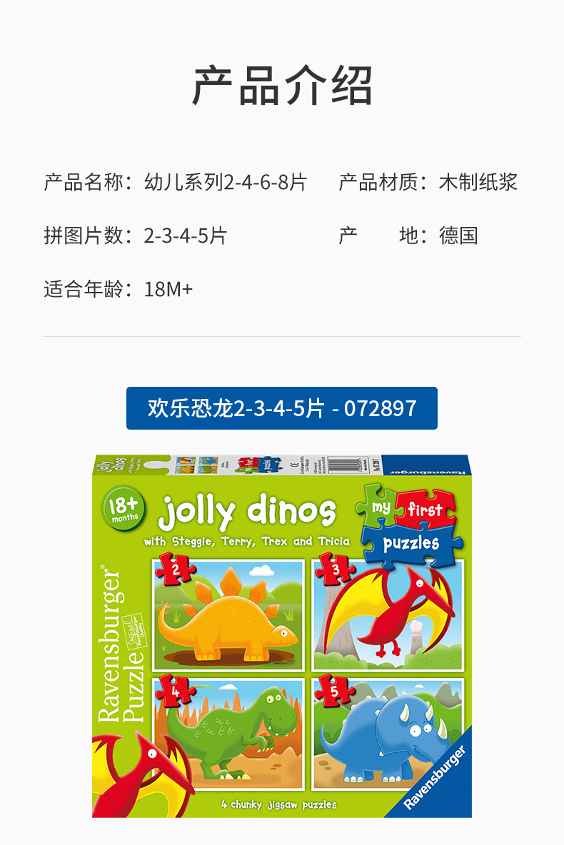 Ravensburger拼图 儿童益智玩具宝宝早教动物汽车2岁
