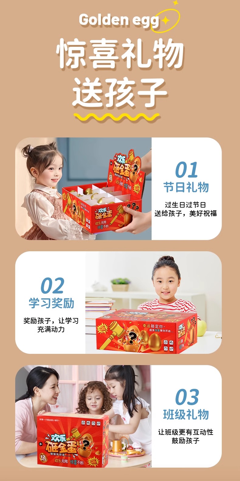 【惊喜等你发现 欢乐砸金蛋】儿童礼物砸金蛋洞洞乐生日盲盒小学生婴儿玩具戳拆拆女孩男孩抽奖