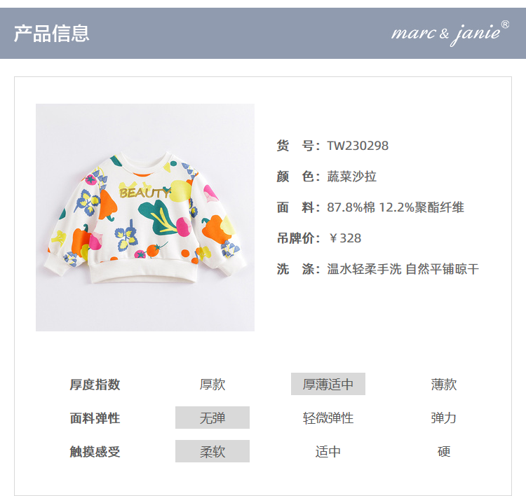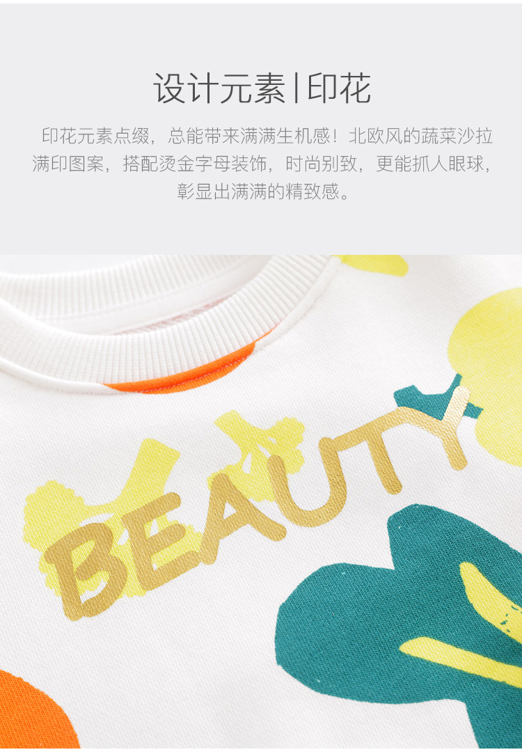 马克珍妮春装新款 女童北欧风满印宽松套头卫衣230298