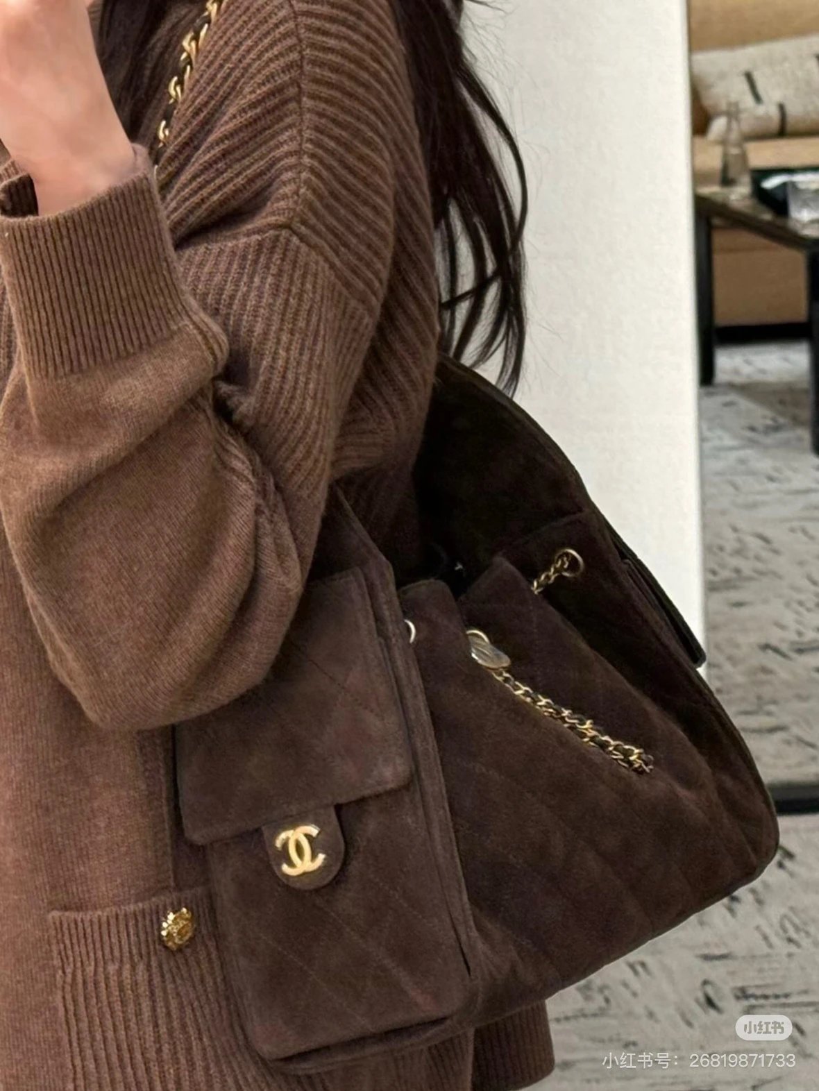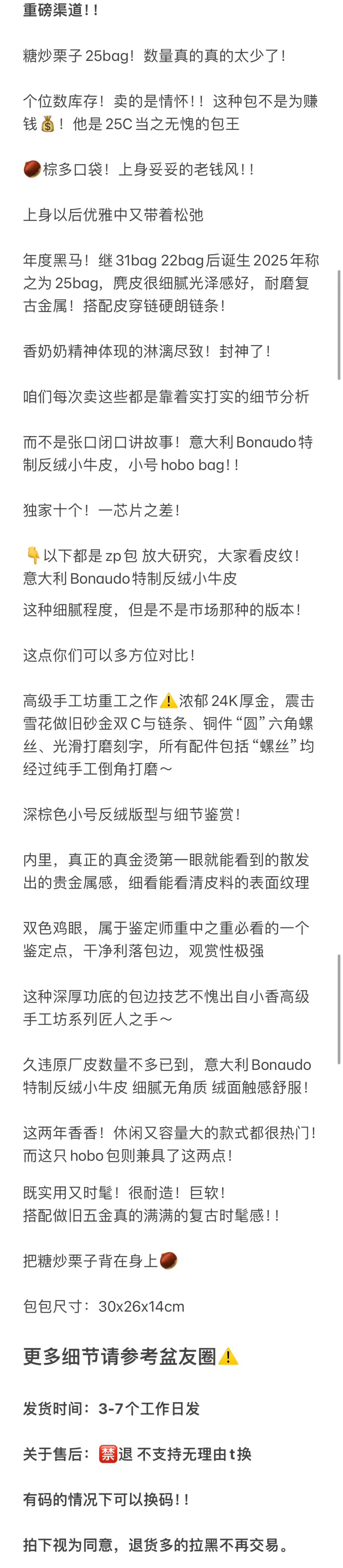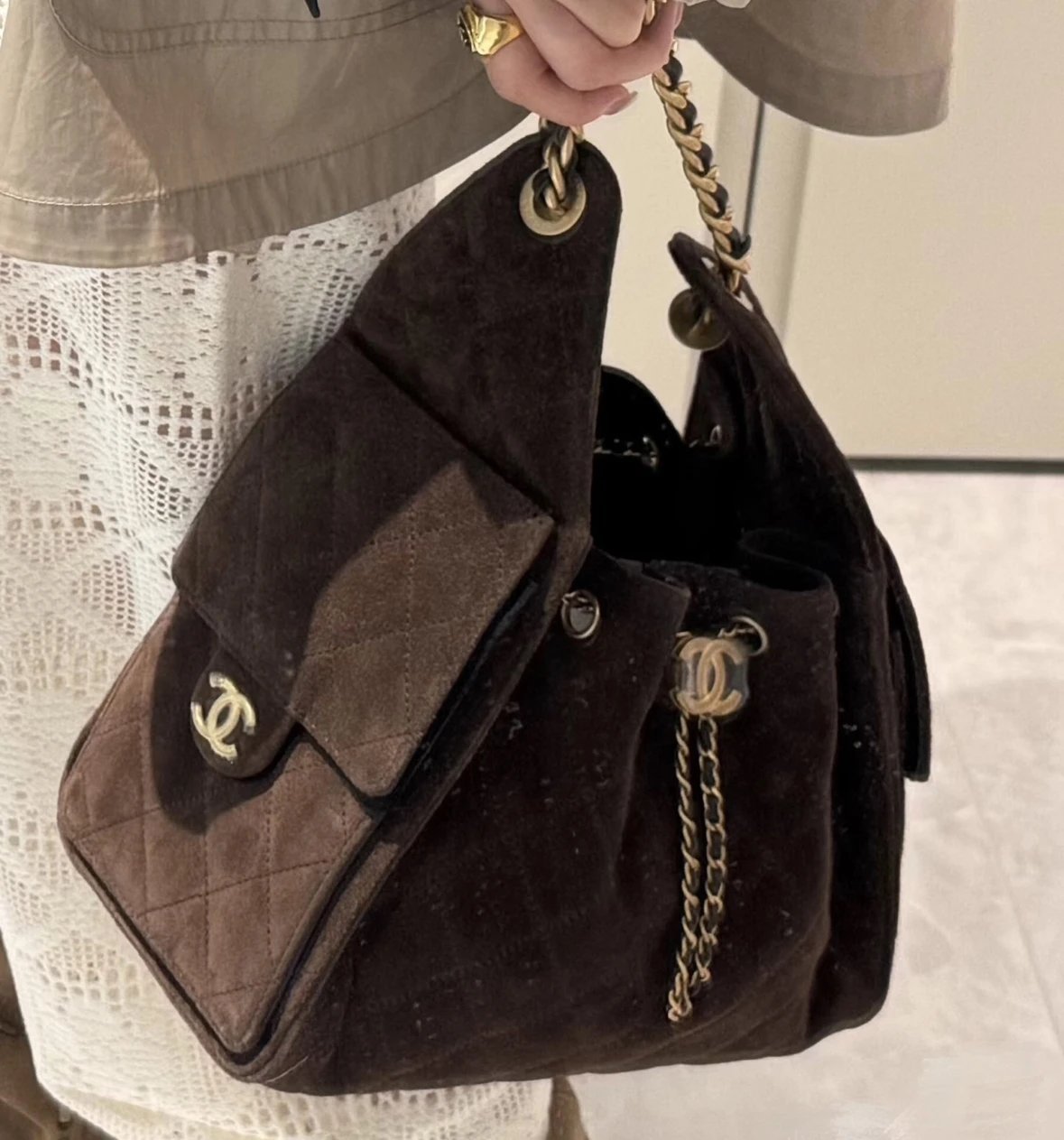 重磅推荐 25bag糖炒栗子小号hobo 意大利Bonaudo反绒小牛皮 多口袋吊床包 单肩链条包