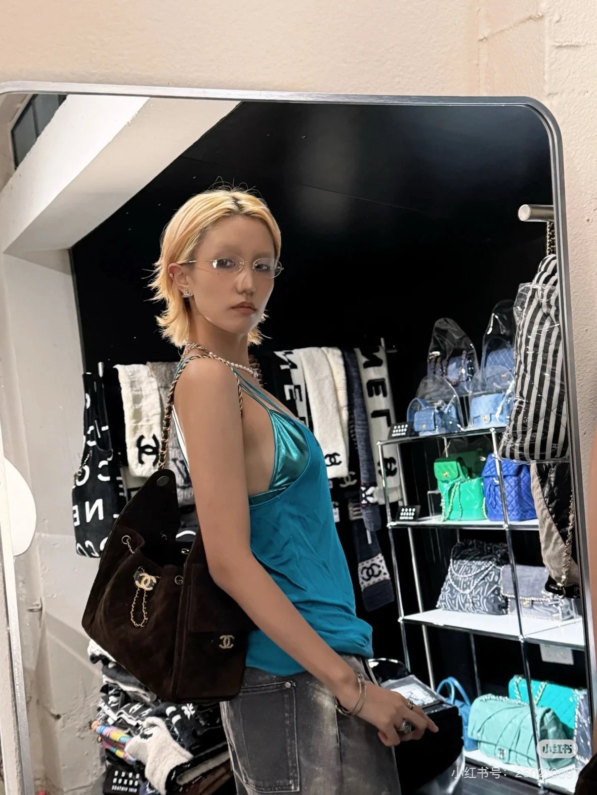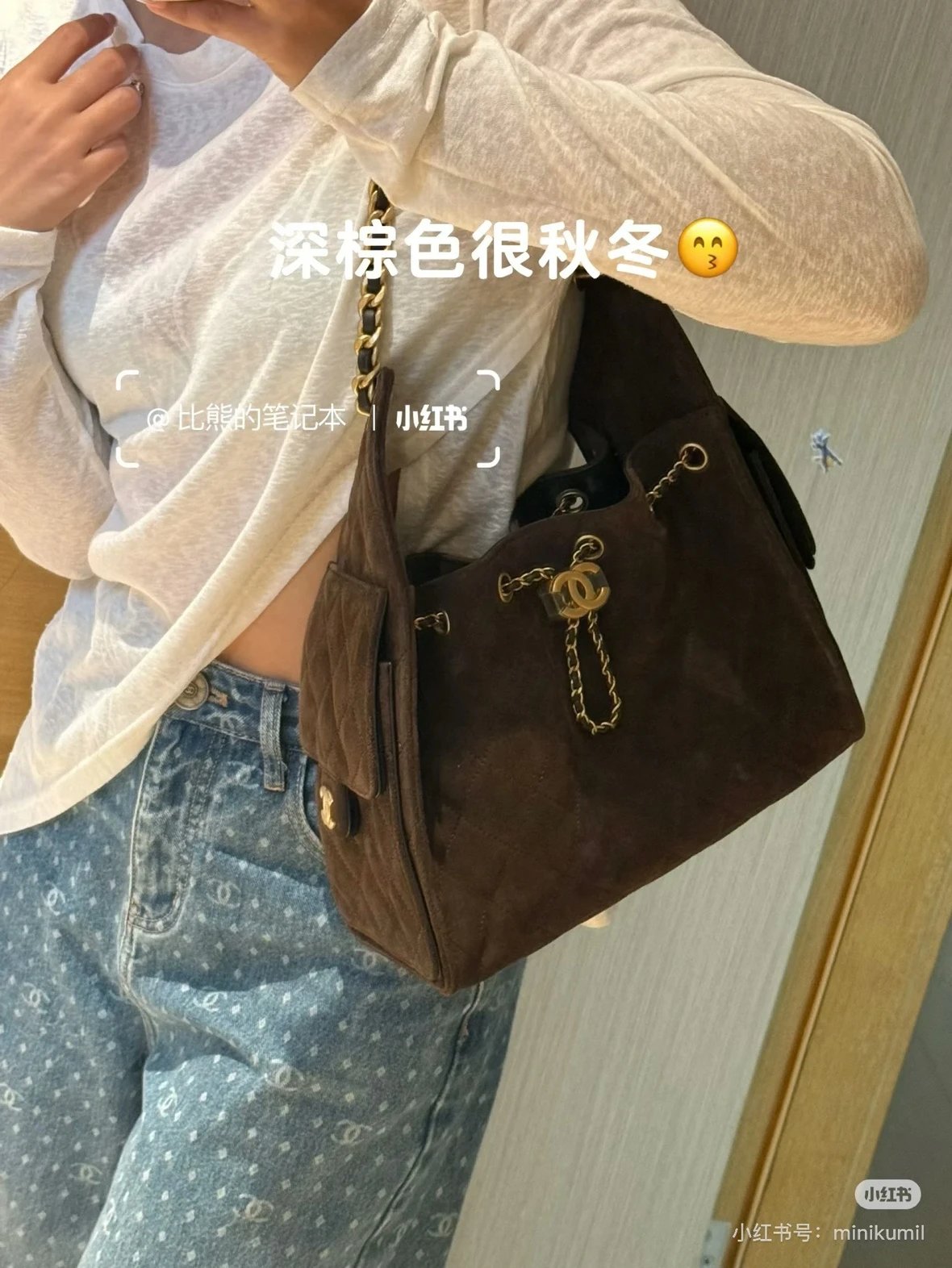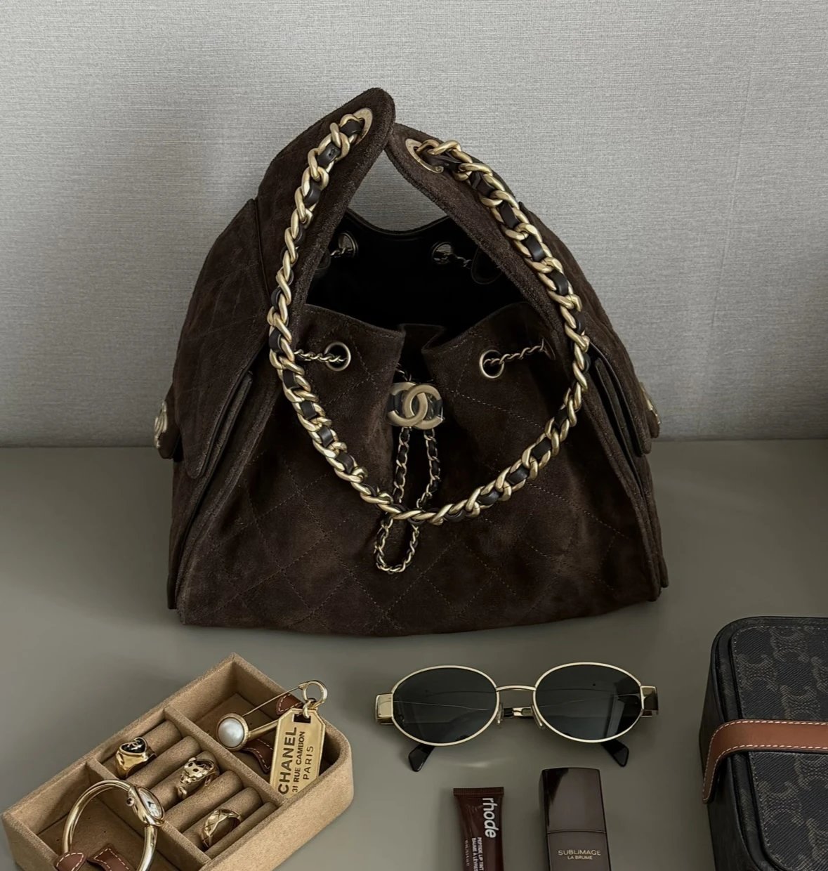 重磅推荐 25bag糖炒栗子小号hobo 意大利Bonaudo反绒小牛皮 多口袋吊床包 单肩链条包