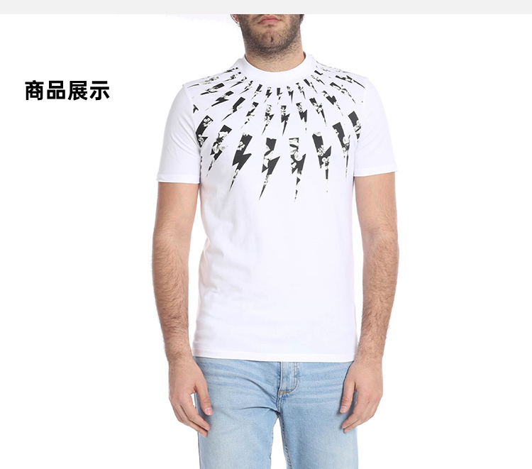 NEIL BARRETT 尼奥.贝奈特 男士闪电印花圆领短袖T恤 白色 BJT513B L578S 03