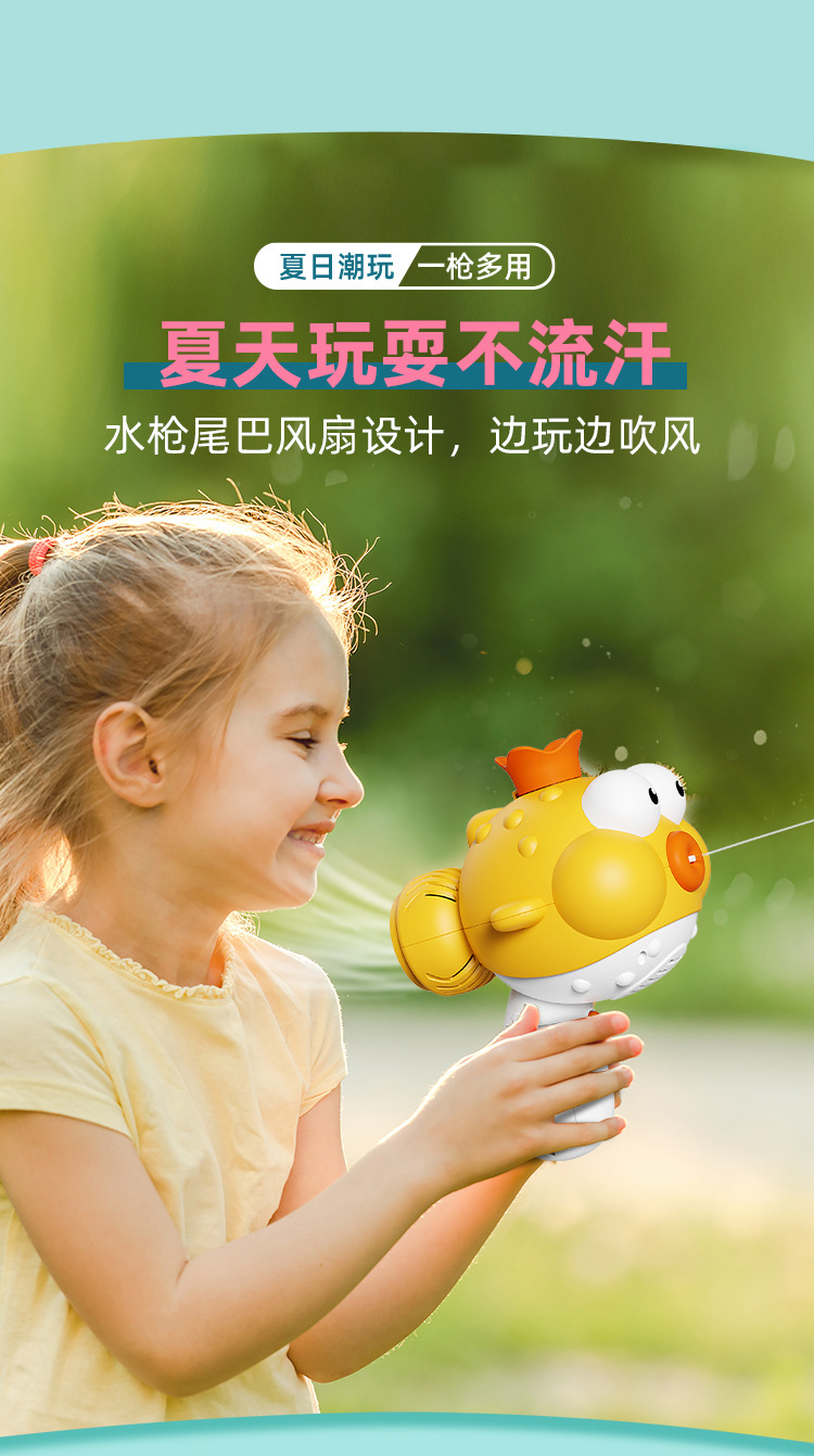 【呆萌丑鱼风扇水枪】新款卡通小丑鱼 电动水枪带风扇 夏季户外打水仗戏水玩具