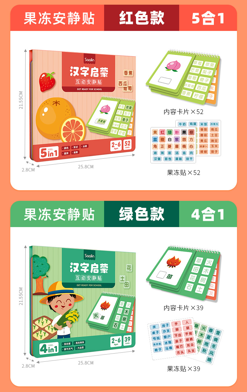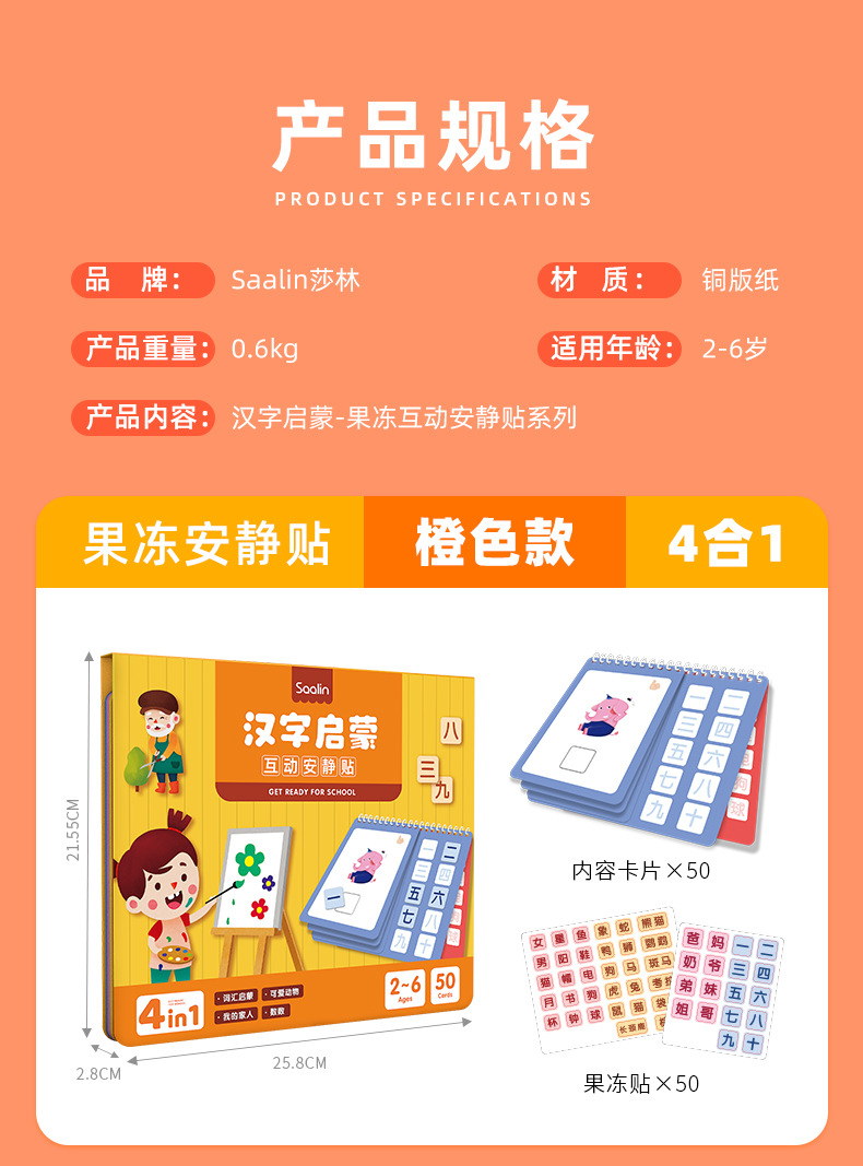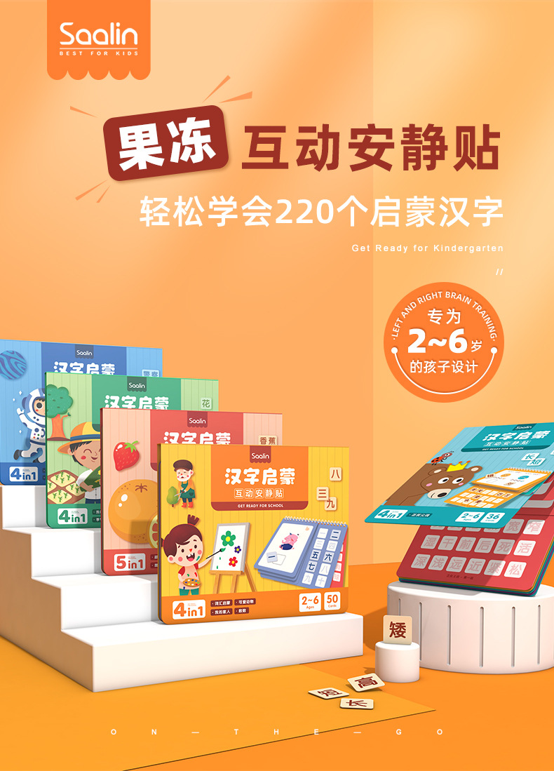 【轻松学会220个启蒙汉字】Saalin儿童果冻互动安静贴 儿童益智玩具识字启蒙教具