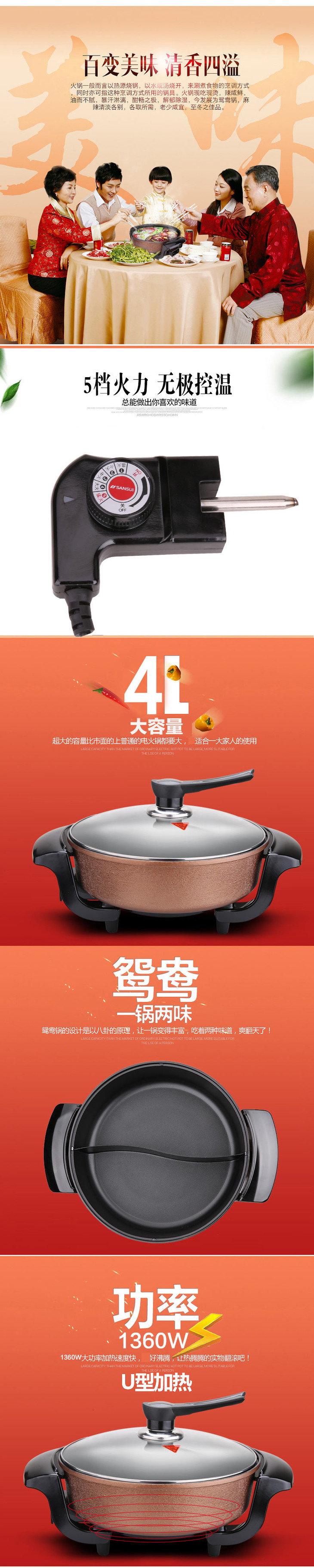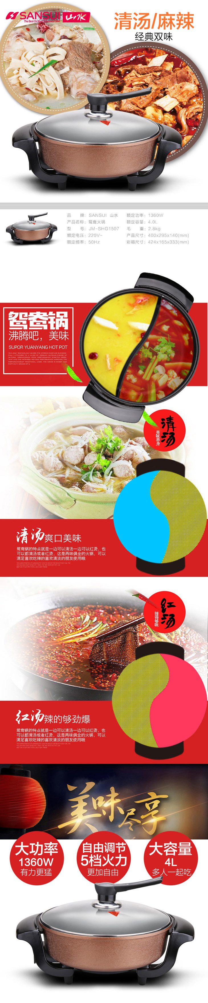 山水 SANSUI 韩式鸳鸯双味火锅 鸳鸯电火锅韩式多功能电热锅电炒锅 JM-SHG1507