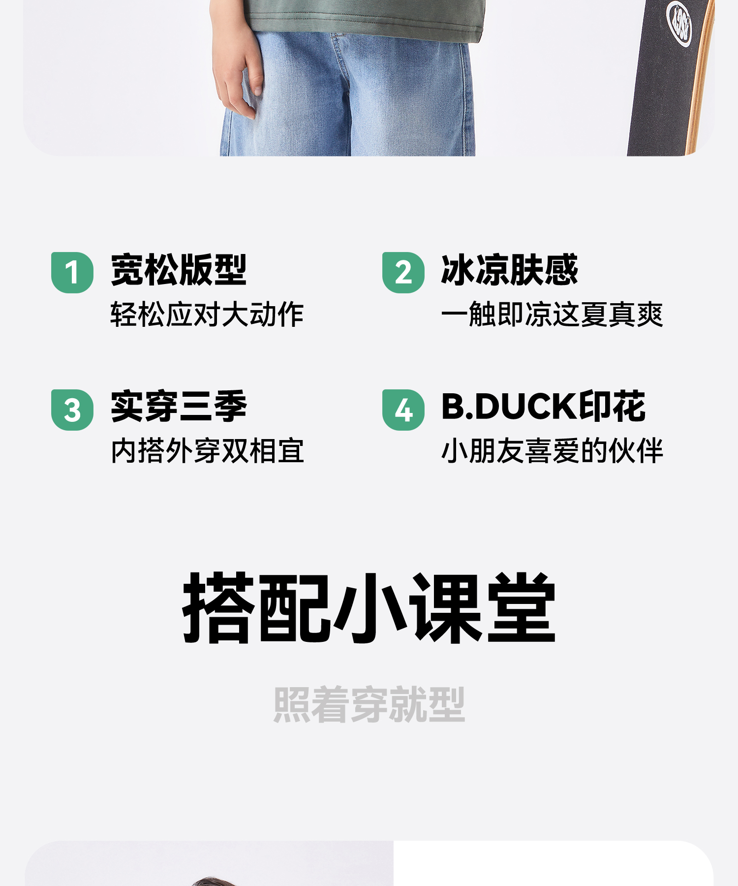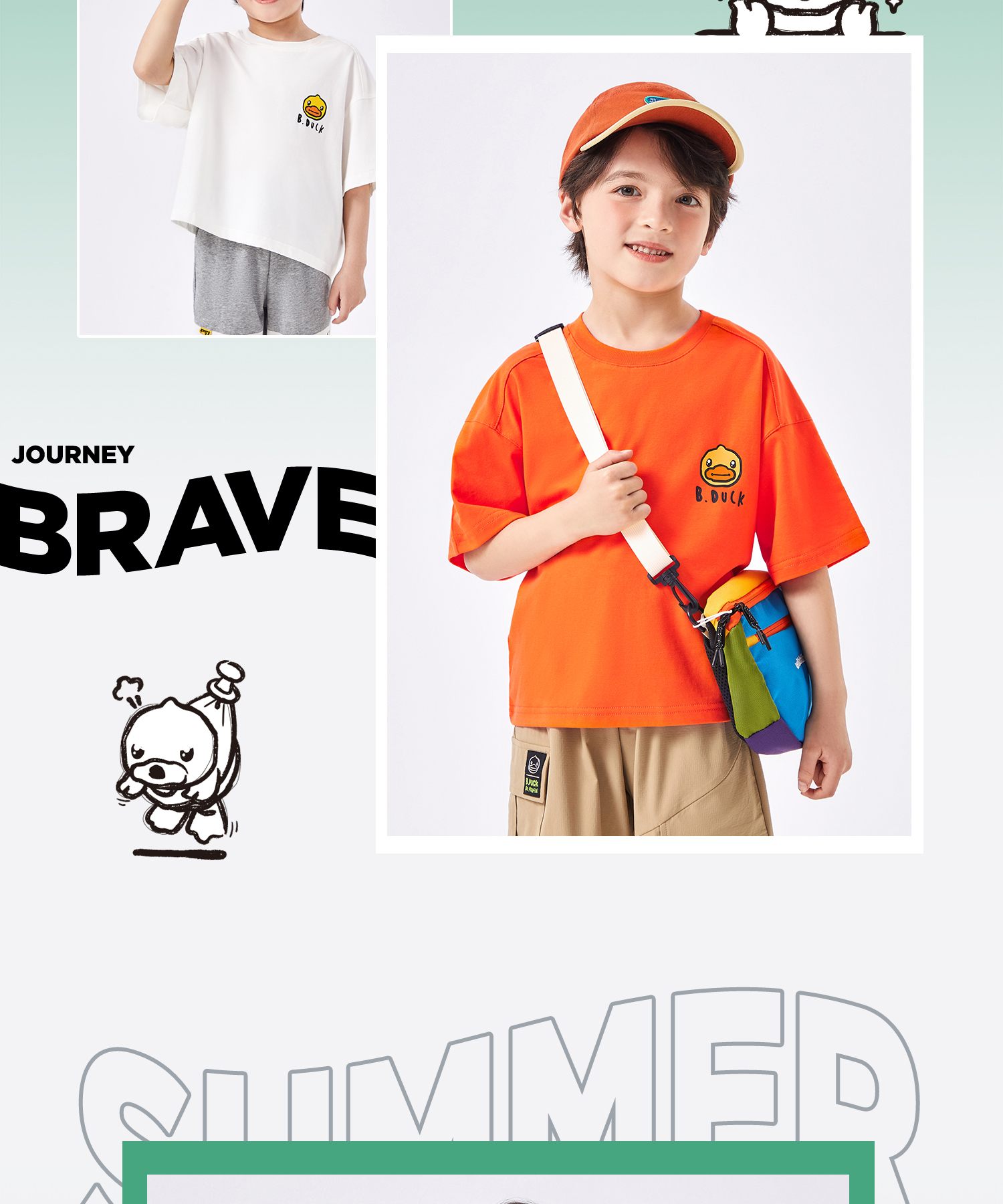 【冰感】B.Duck小黄鸭童装夏季男女童短袖T恤105-150 BF2501050