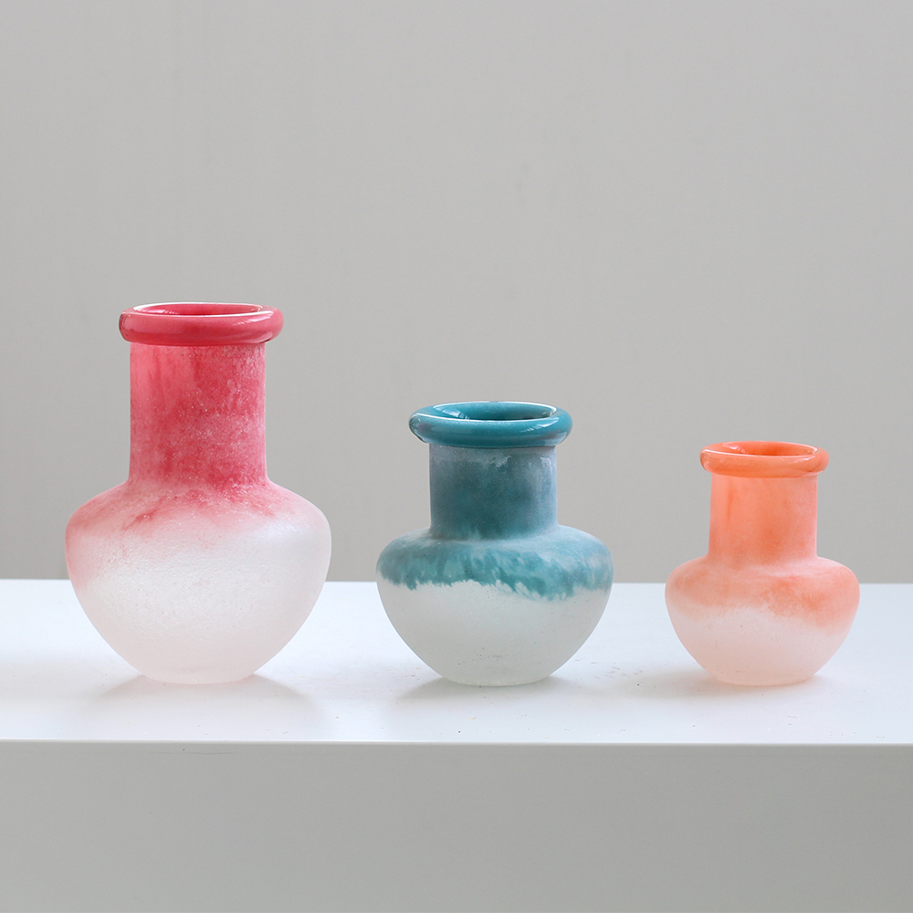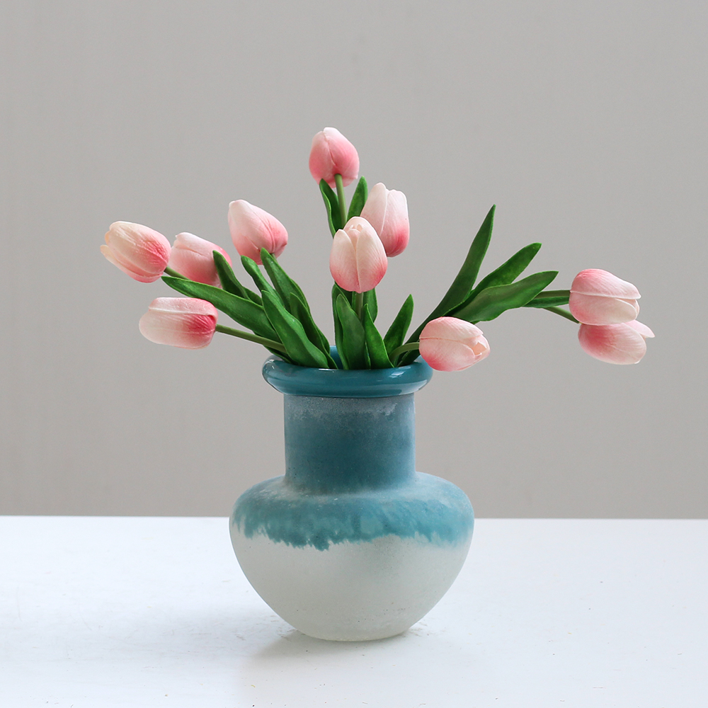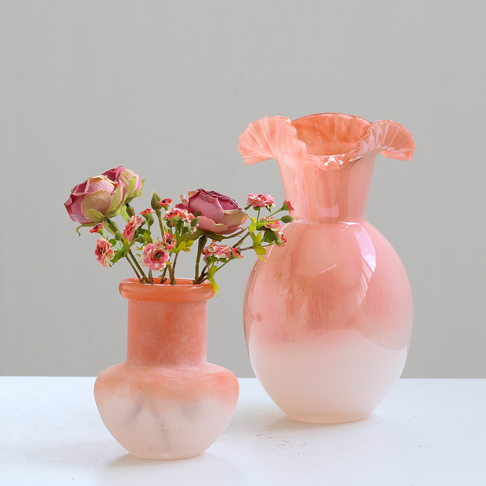 美式复古风手工不规则卷口渐变磨砂花瓶客厅餐桌电视柜家居品批发