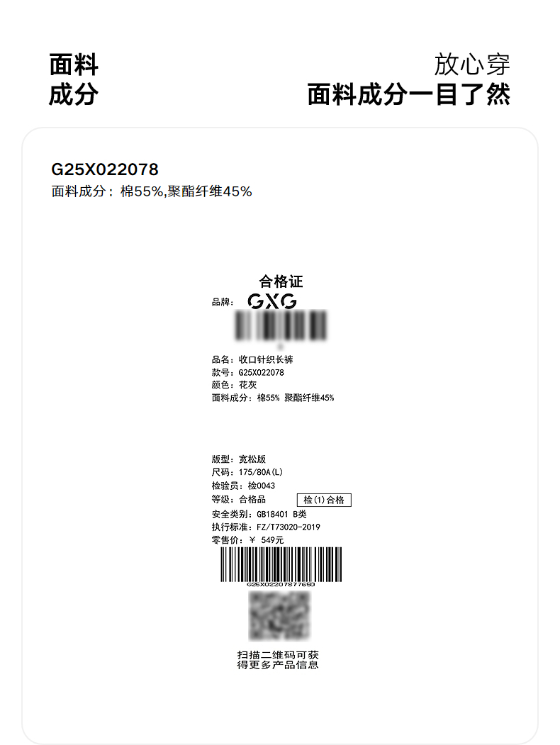 GXG男装 宽松卫裤束脚裤休闲长裤简约运动裤 夏季热卖G25X022078