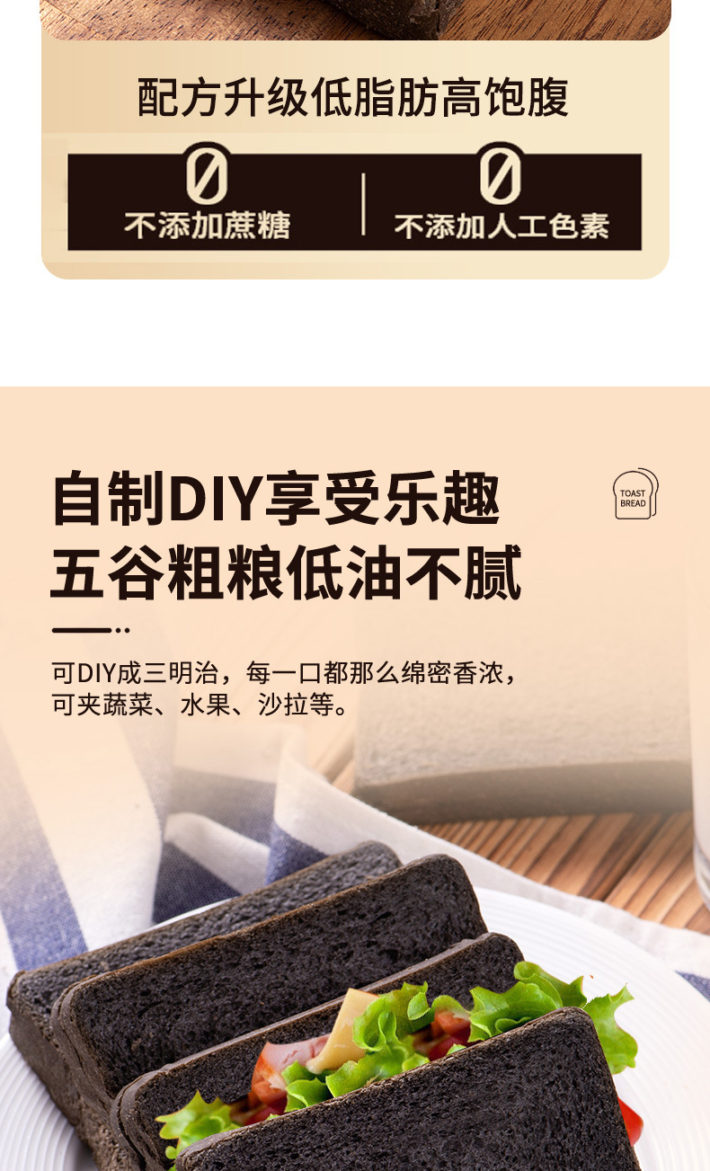 「五黑全麦面包」壹得利五黑全麦吐司 切片面包饱腹糕点零食