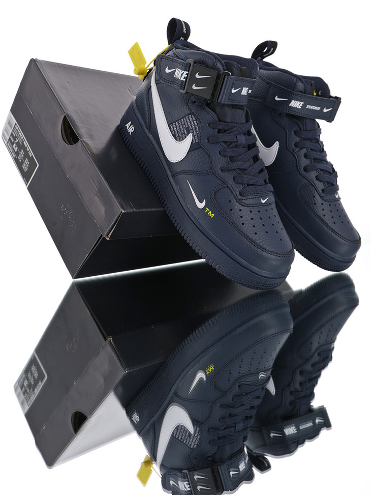 耐克Nike Air Force 1 Low Mid Utility Pack Off-White风格定制限定 空军低帮篮球板鞋 黑白灰水泥 白黑深蓝