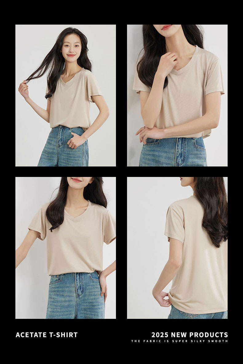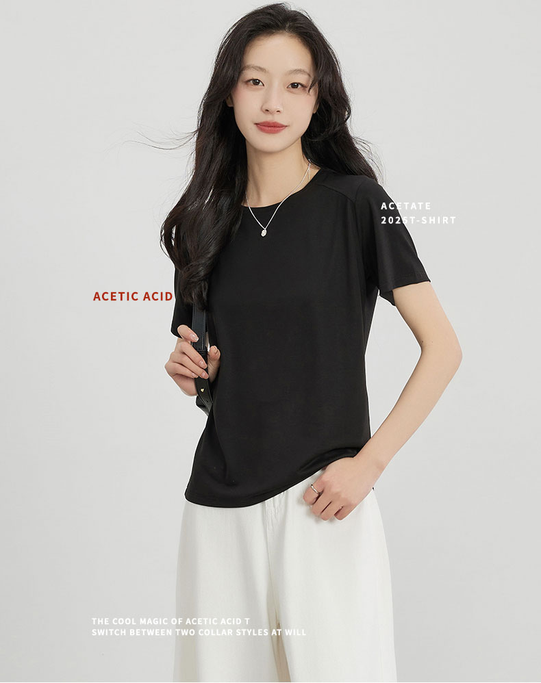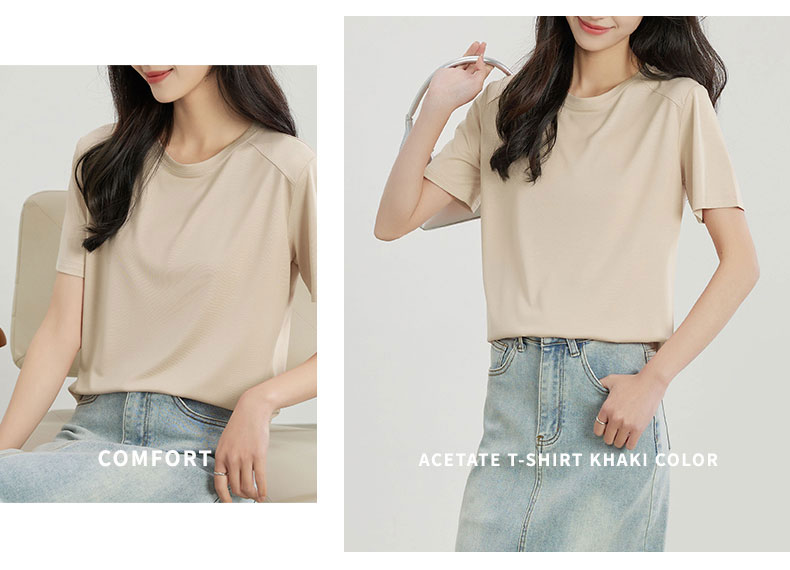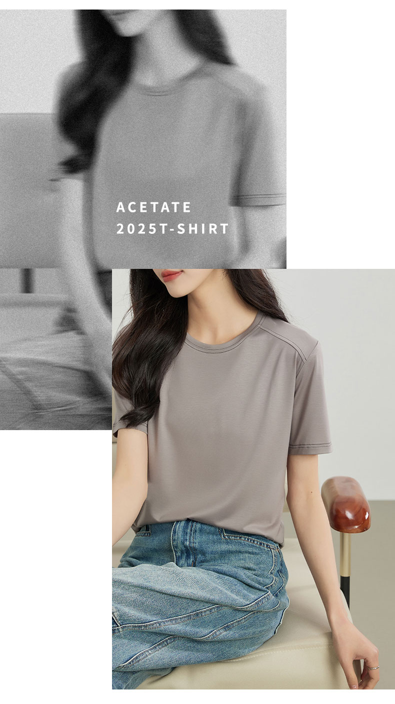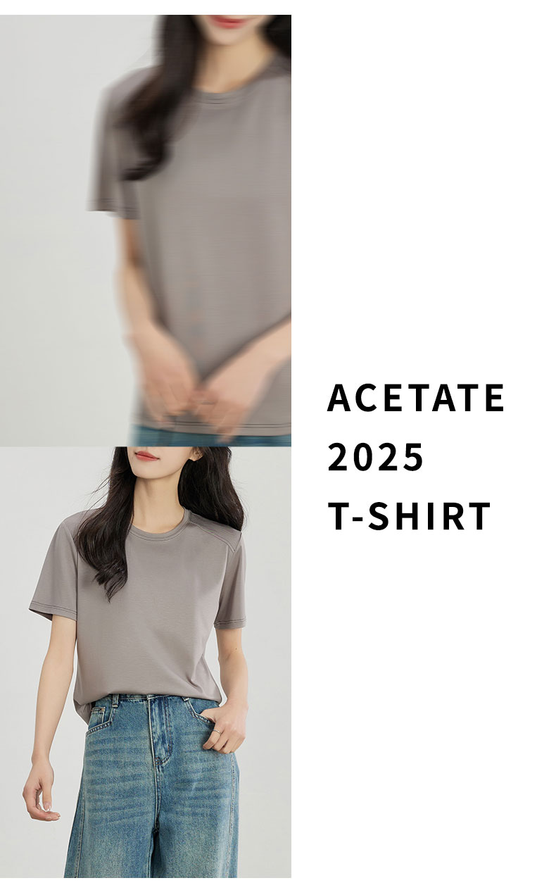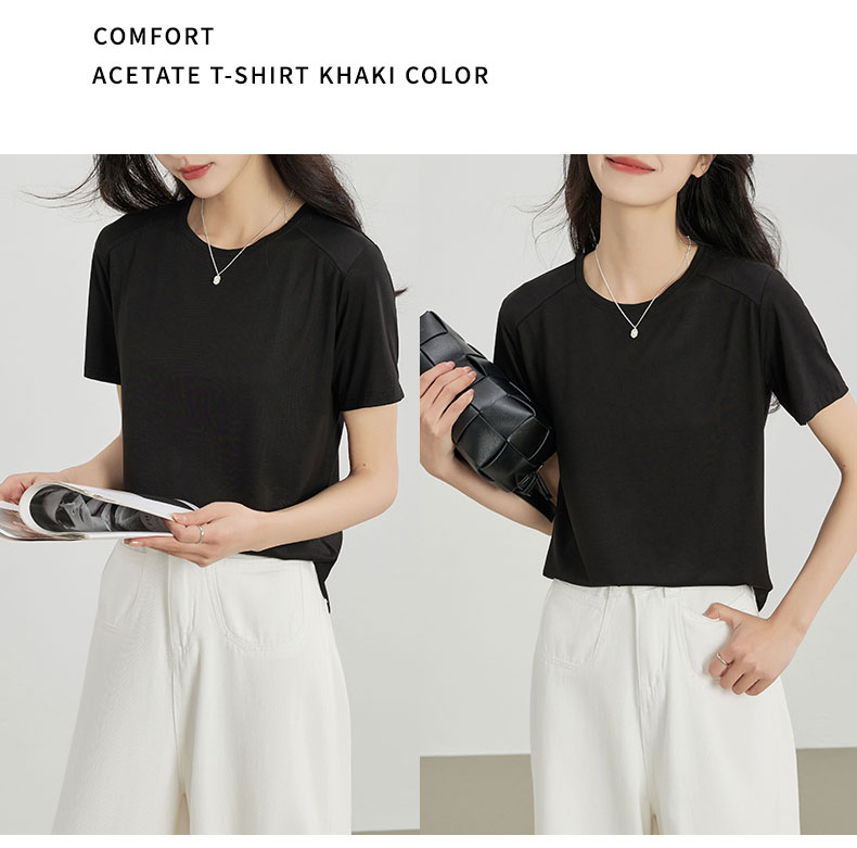 【69.9两件丨醋酸短袖T恤】醋酯纤维面料,自带光泽感!舒适裸感亲肤,吸湿透气!上身冰冰凉凉,舒张自如!垂坠感好,搭配牛仔裤、半身裙都超有气质!【TS-J】