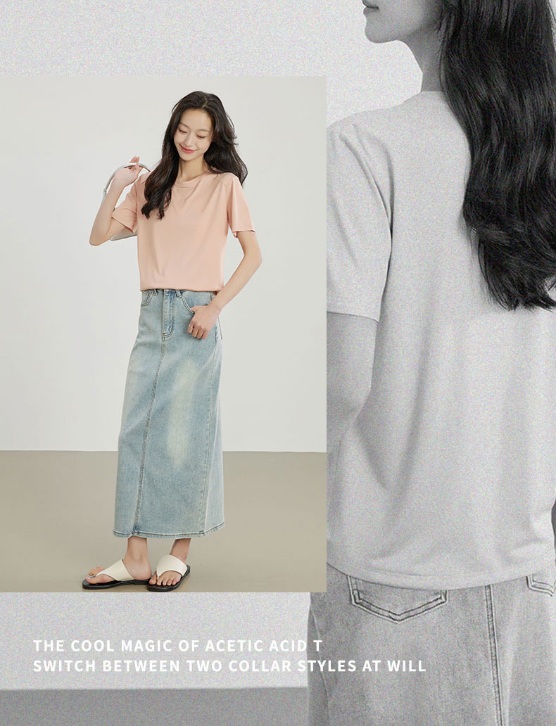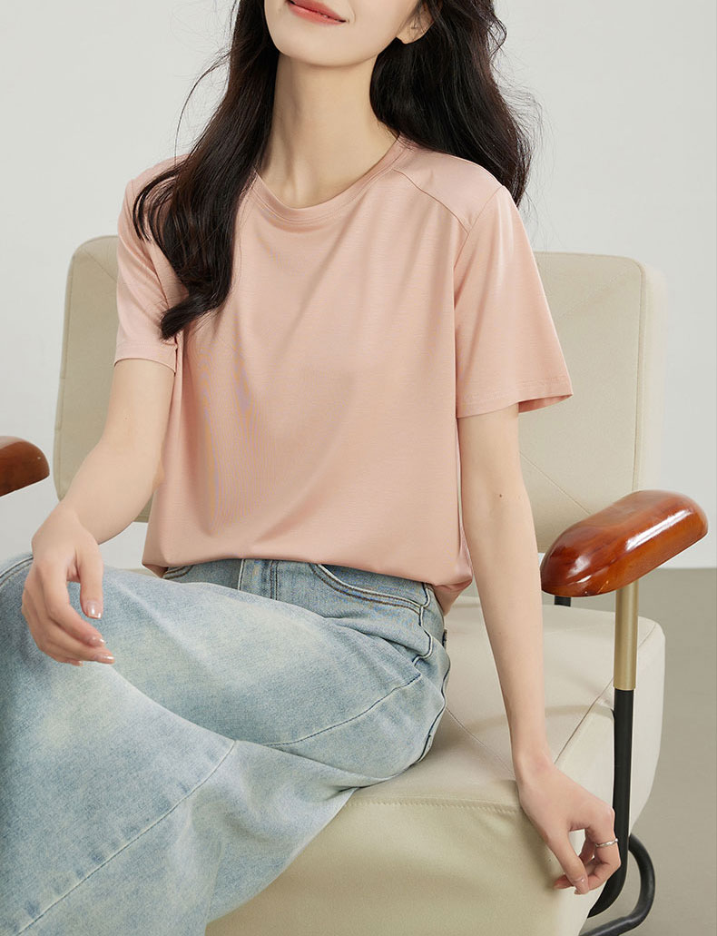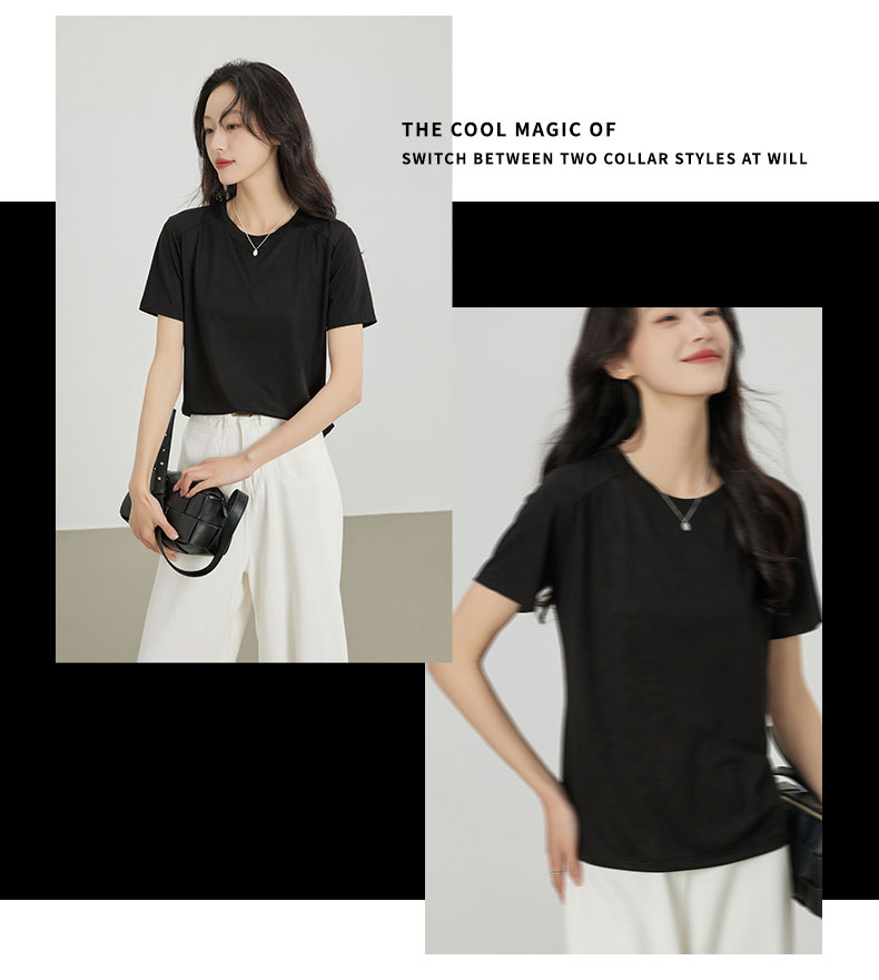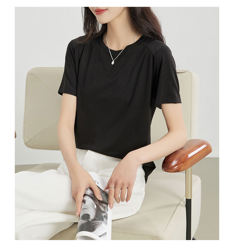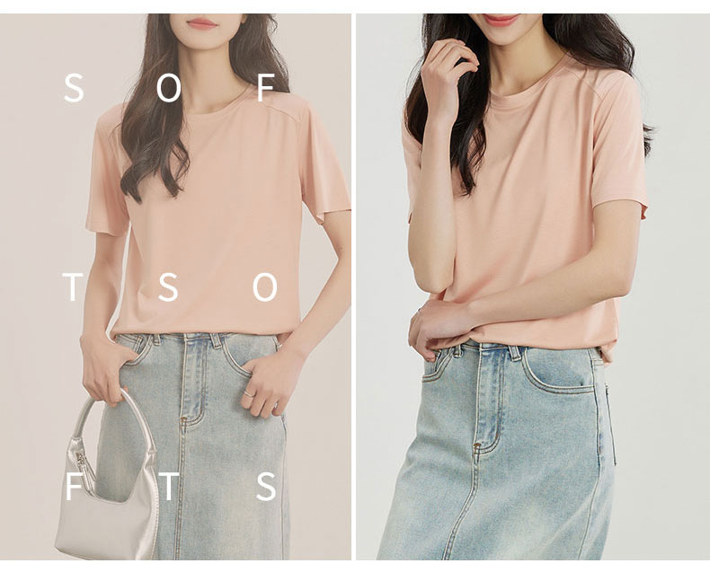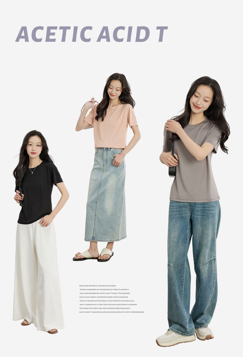 【69.9两件丨醋酸短袖T恤】醋酯纤维面料,自带光泽感!舒适裸感亲肤,吸湿透气!上身冰冰凉凉,舒张自如!垂坠感好,搭配牛仔裤、半身裙都超有气质!【TS-J】