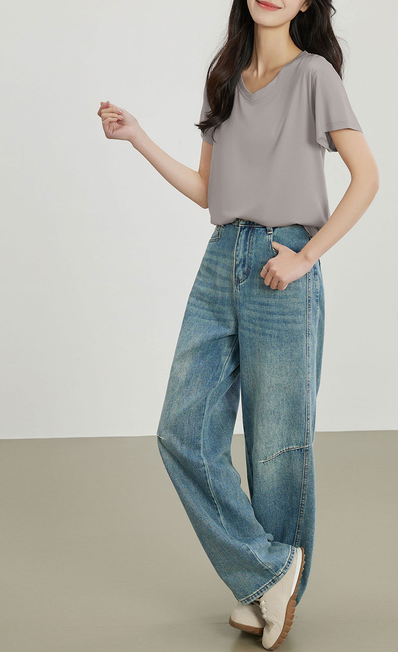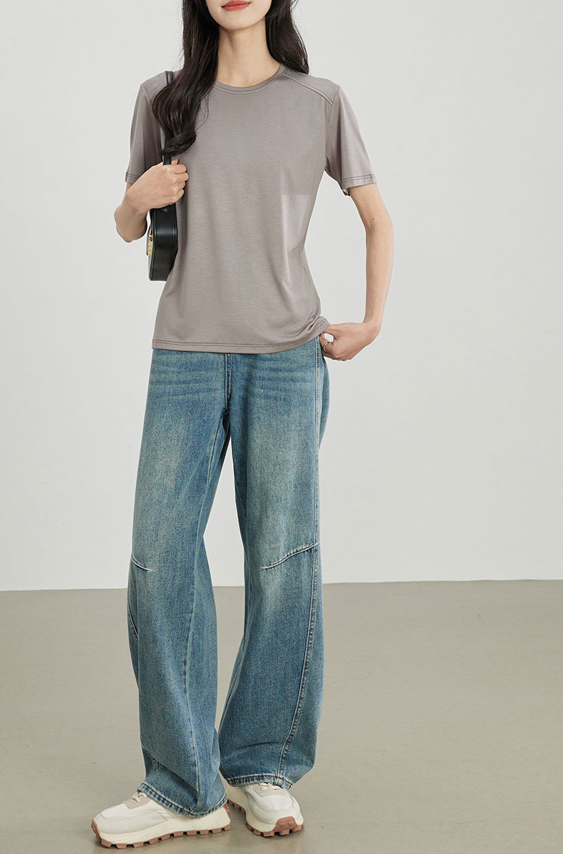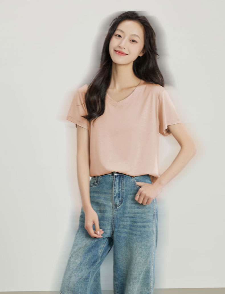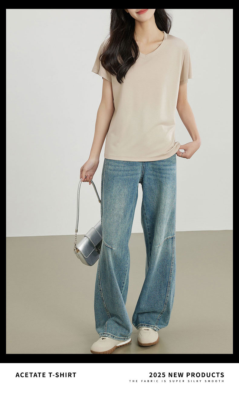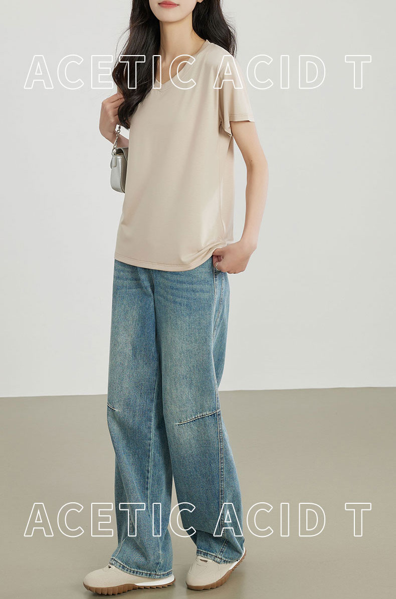 【69.9两件丨醋酸短袖T恤】醋酯纤维面料,自带光泽感!舒适裸感亲肤,吸湿透气!上身冰冰凉凉,舒张自如!垂坠感好,搭配牛仔裤、半身裙都超有气质!【TS-J】