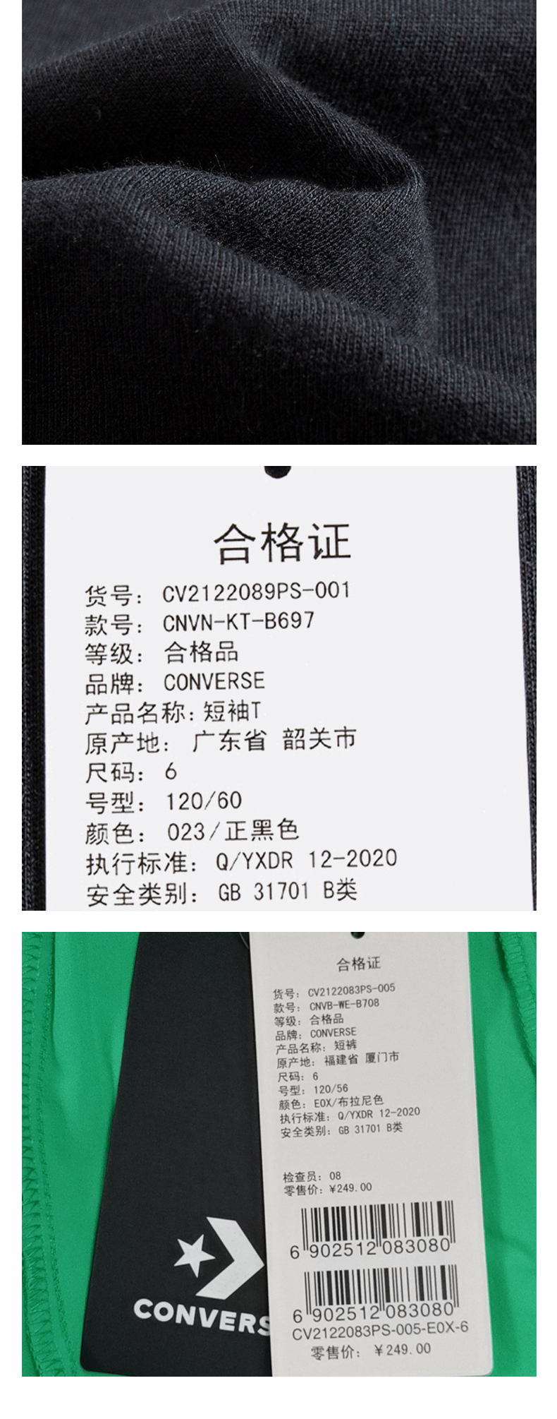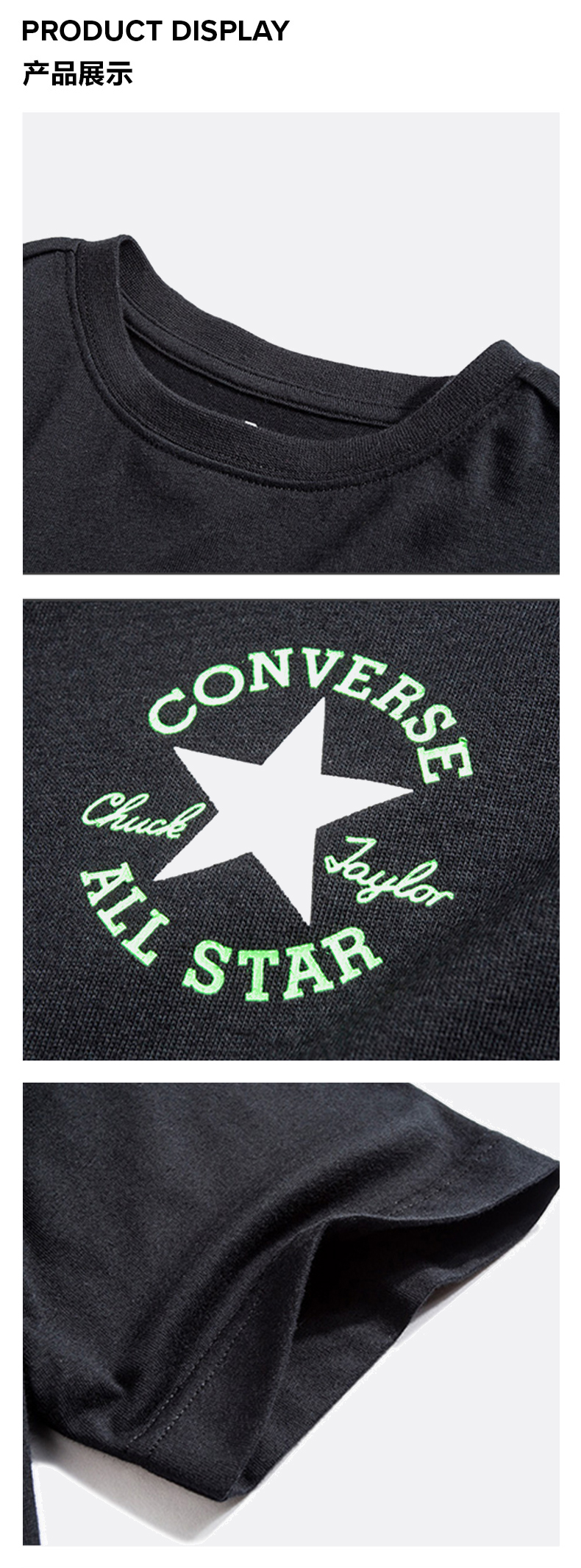Converse匡威童衣夏男女儿童装绿色休闲时尚纯棉短袖T恤衫CV2122089