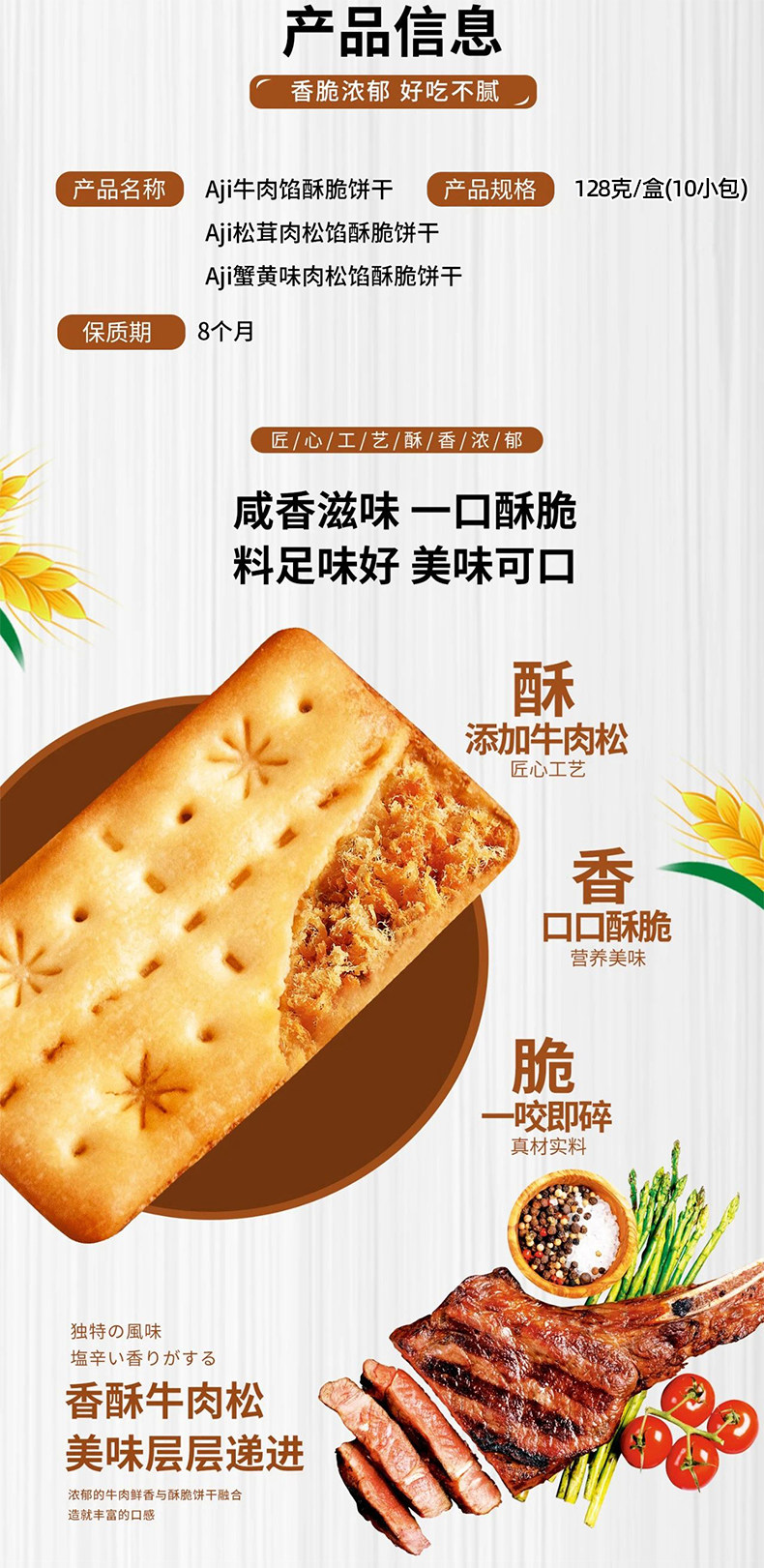 Aji酥脆饼干128g(蟹黄味肉松/松茸肉松/牛肉馅)