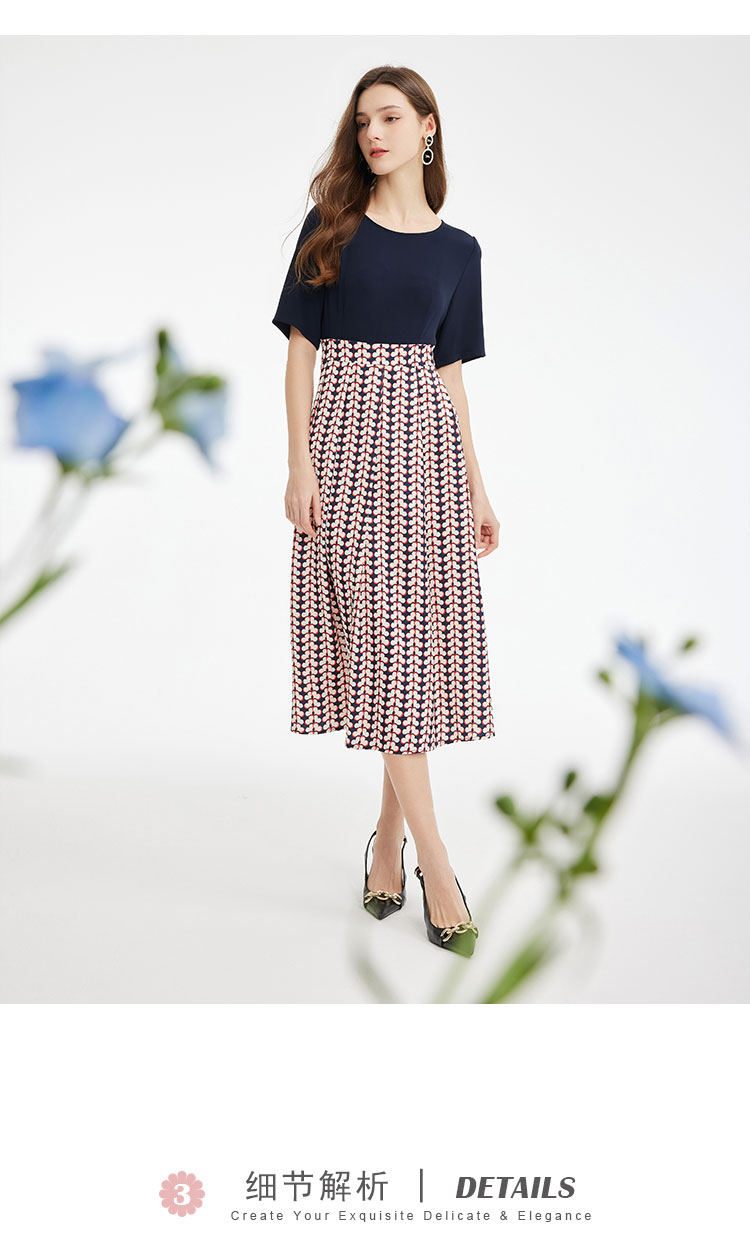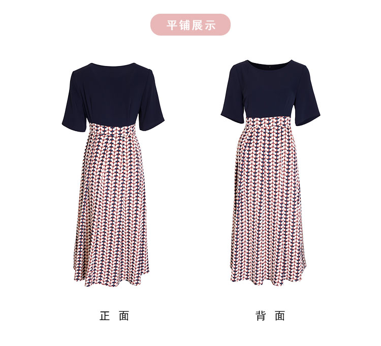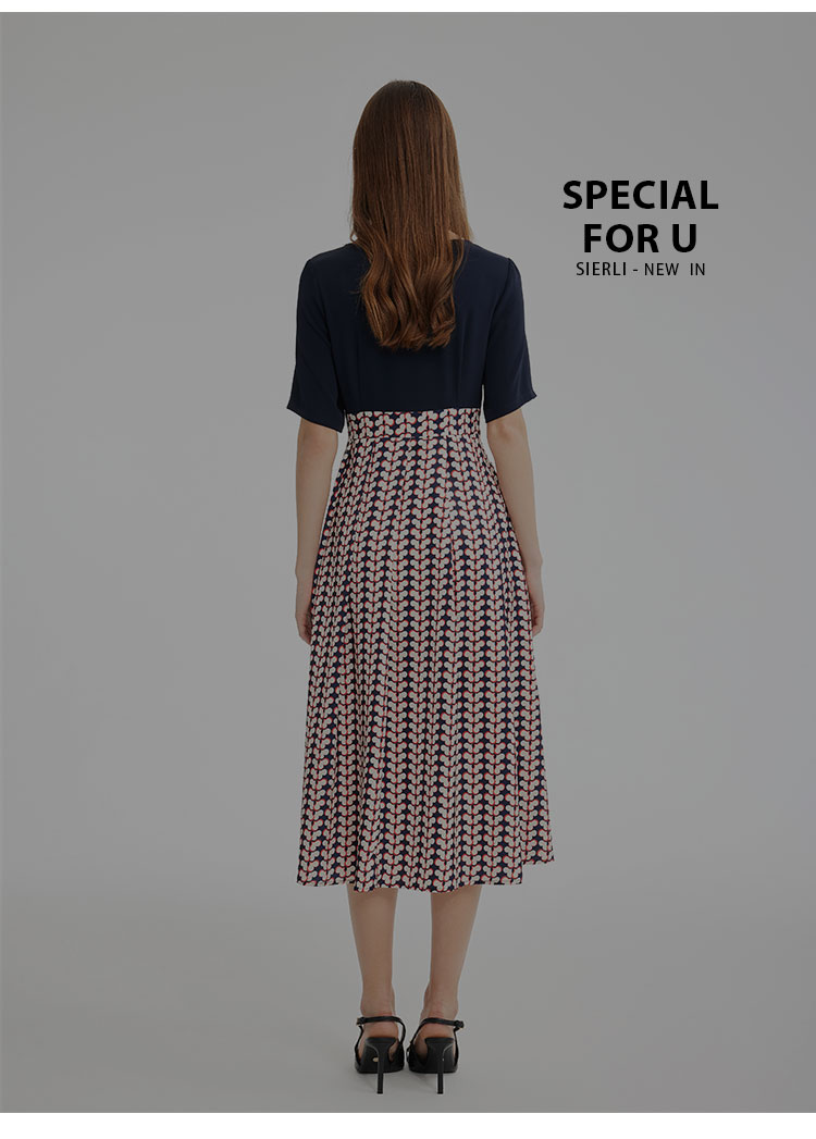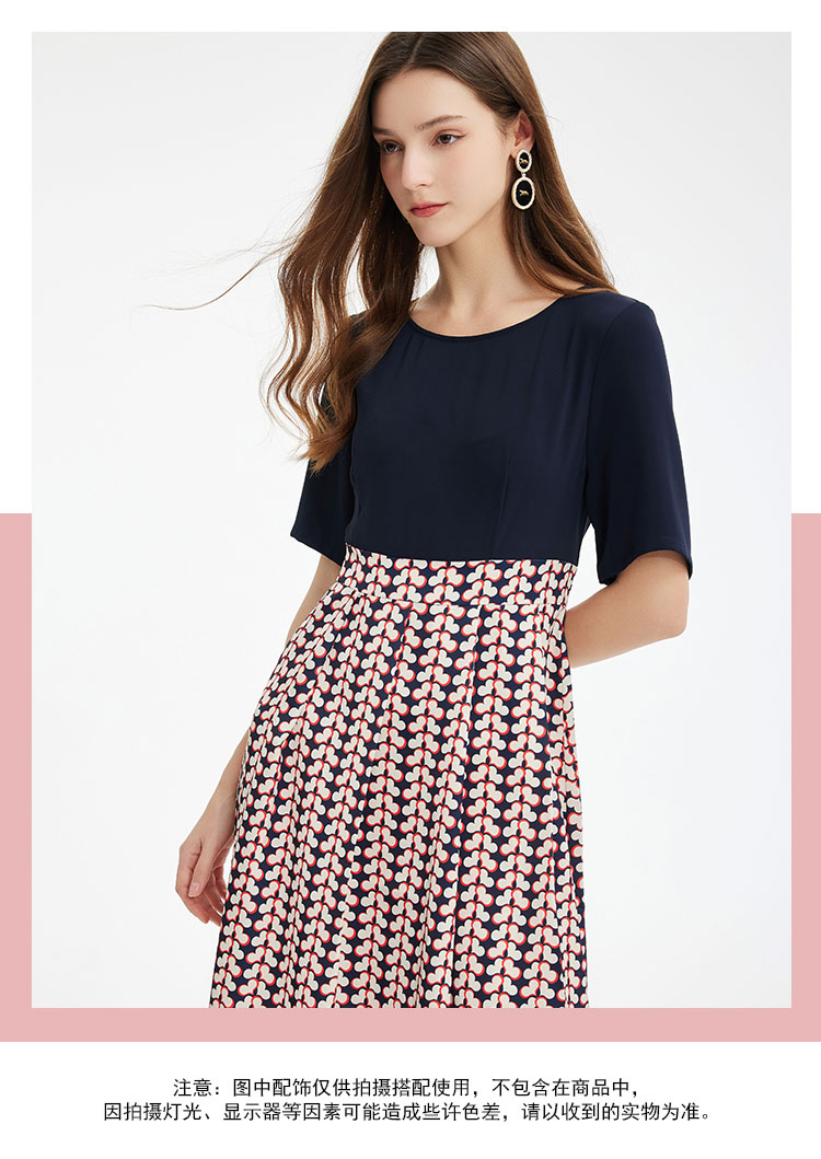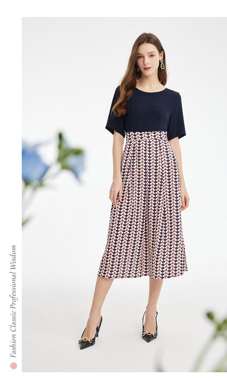 PF886斯尔丽2024新款法式优雅连衣裙撞色拼接印花设计感收腰连衣裙