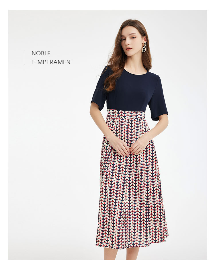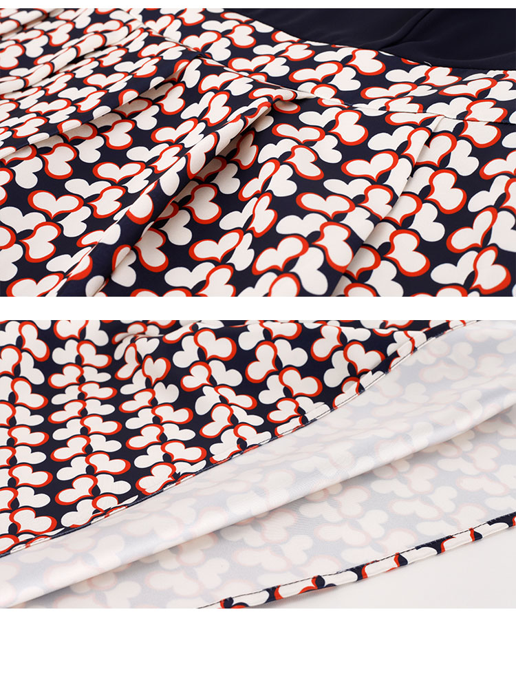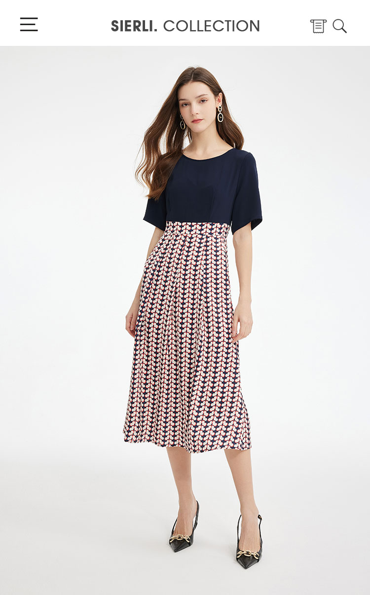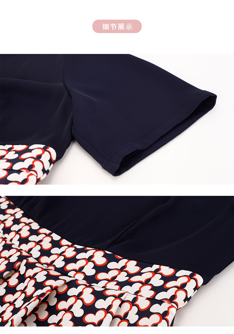 PF886斯尔丽2024新款法式优雅连衣裙撞色拼接印花设计感收腰连衣裙