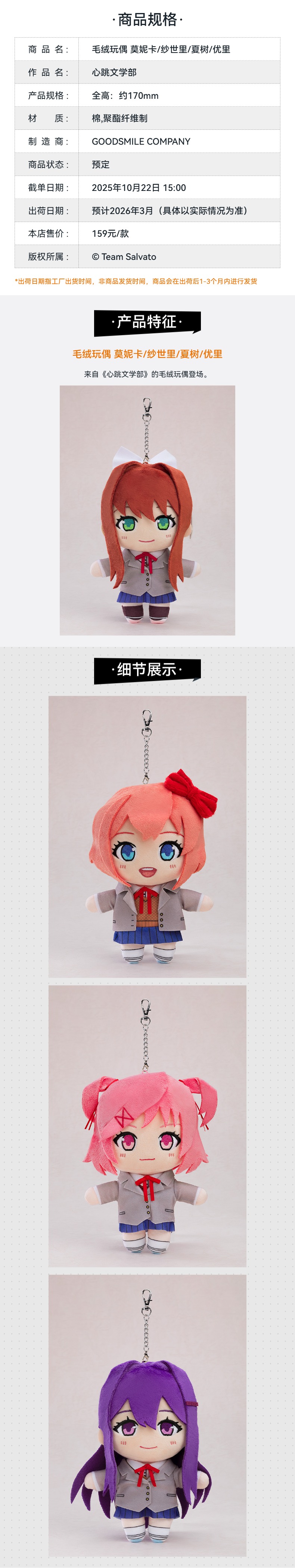 【GSC现货】毛绒玩偶 莫妮卡/纱世里/夏树/优里 心跳文学部
