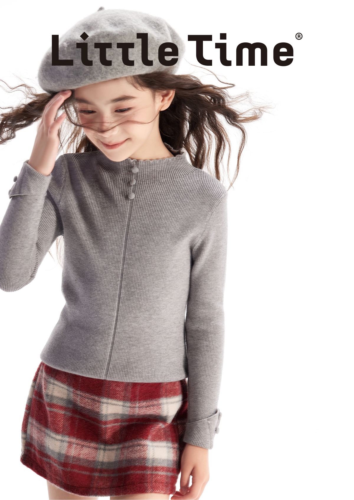 littletime女童打底衫毛衣半高领2024秋冬新款儿童套头长袖针织衫