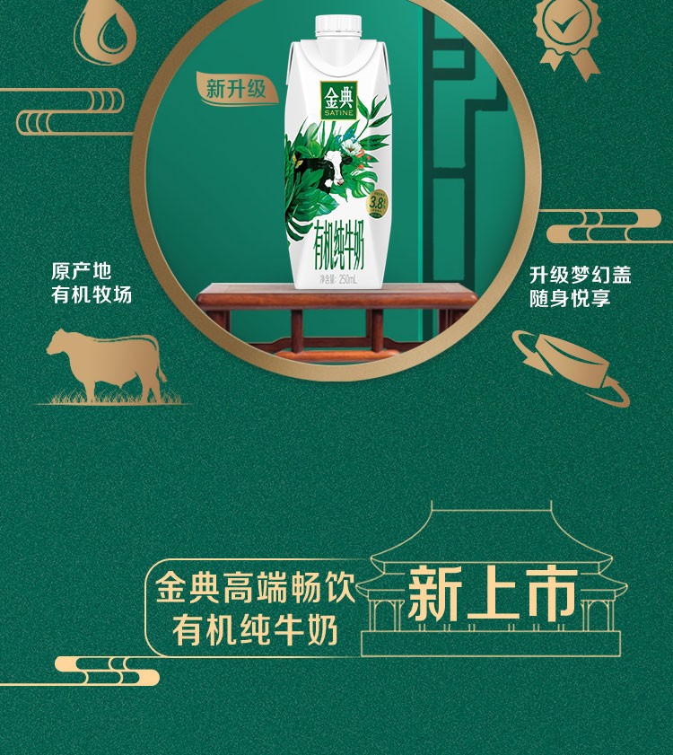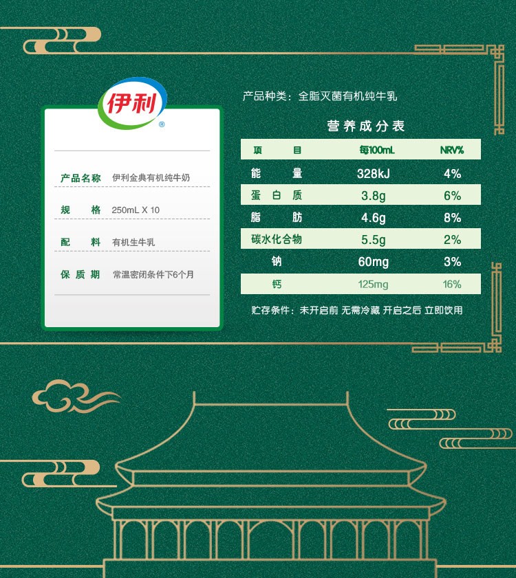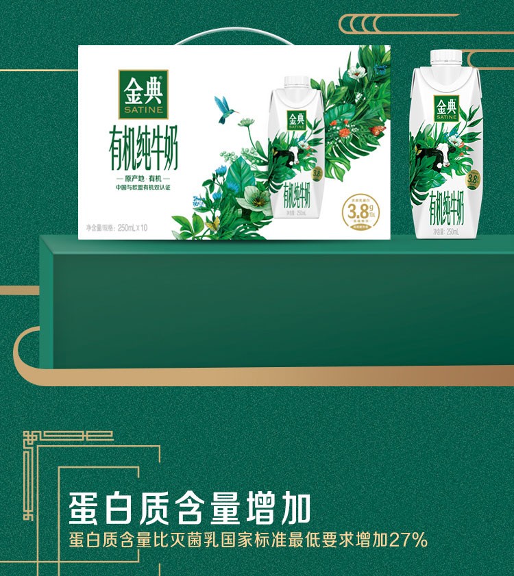 【百】伊利 金典有机脱脂纯牛奶 250ml*10盒/箱