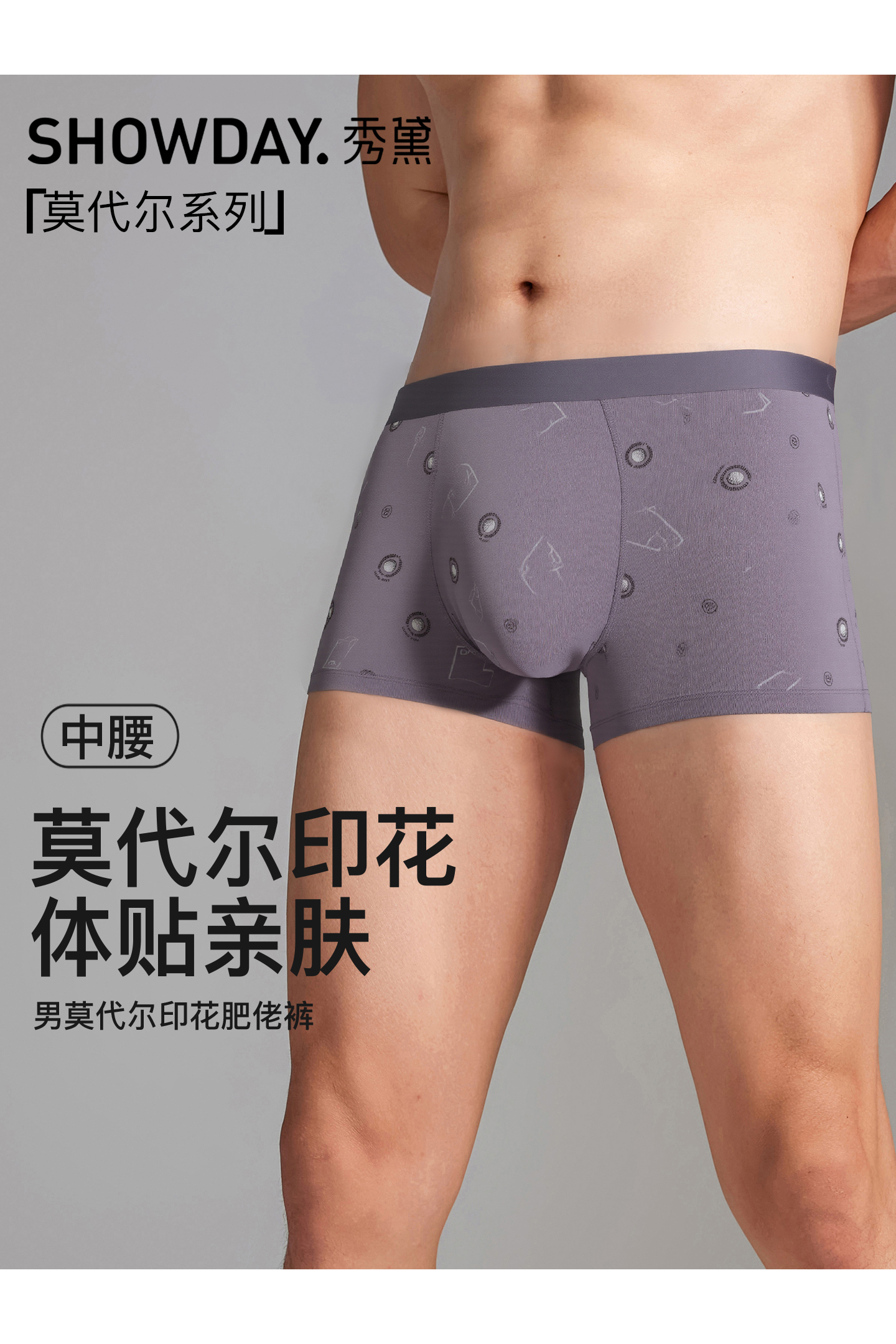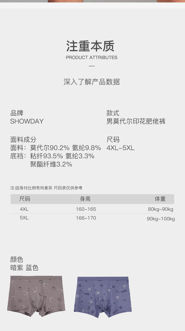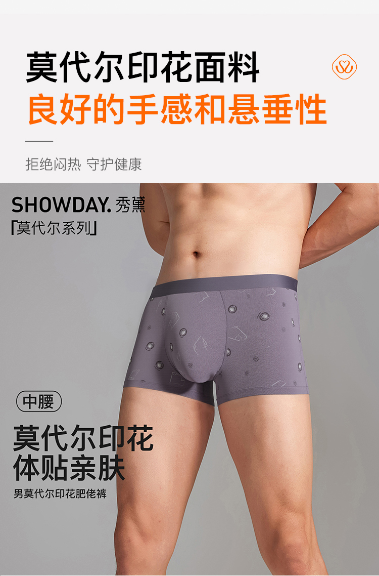 【满3条/6.7折】【秀黛】男莫代尔印花肥佬裤男士大码内裤【1条】S6330004T【门店同款】【内裤非质量问题不退换】