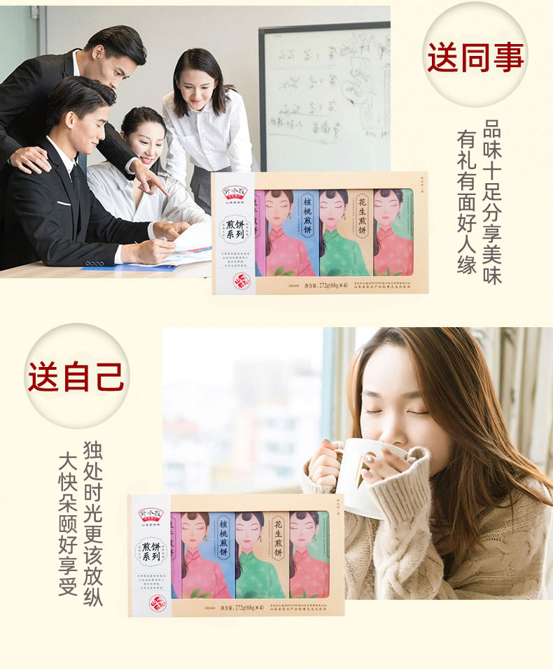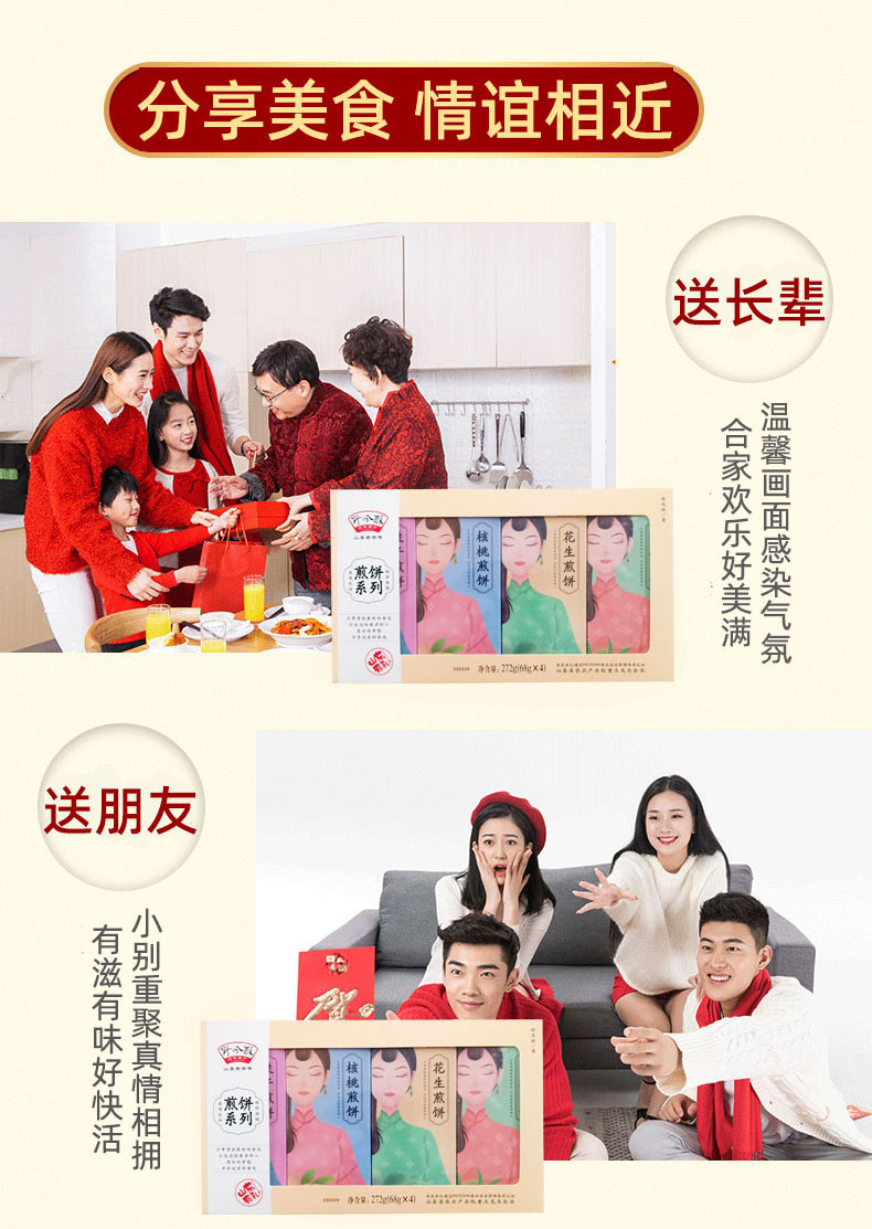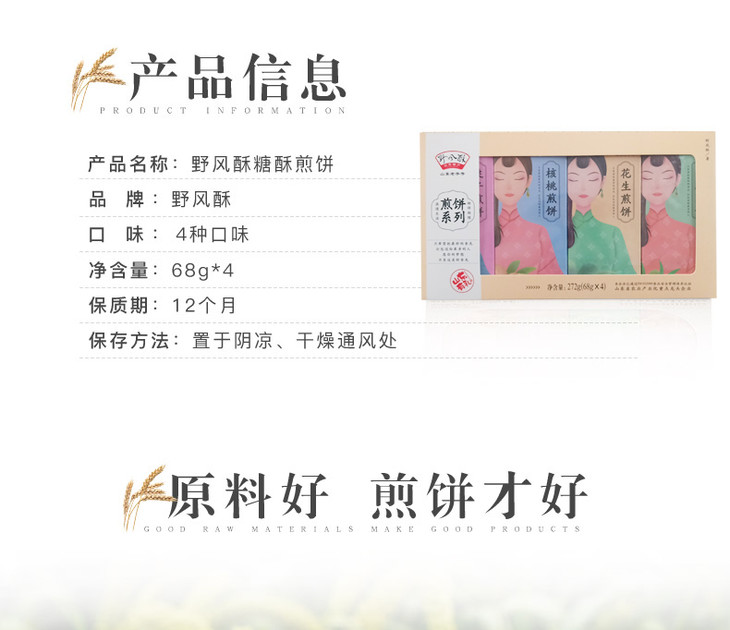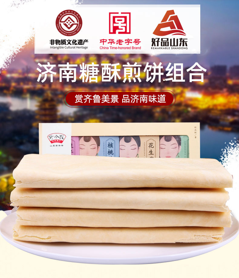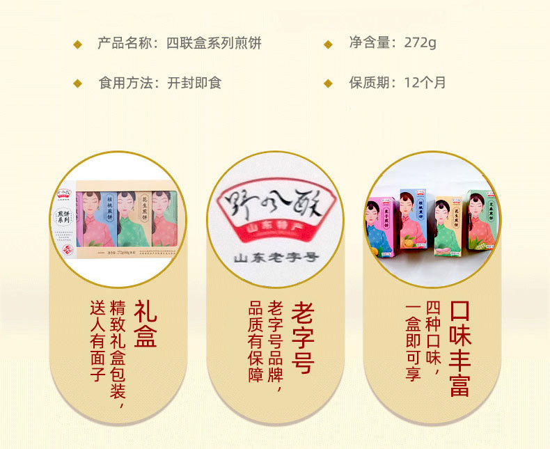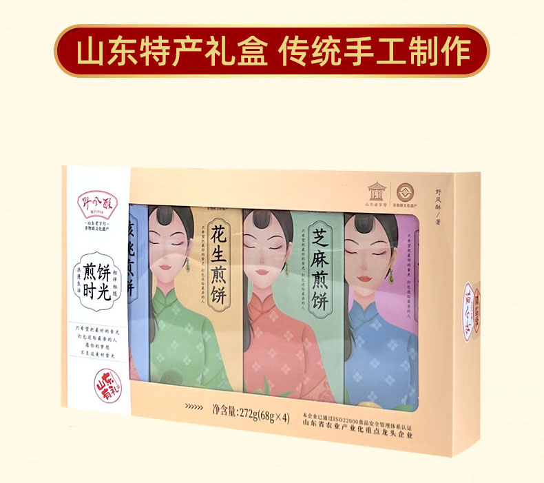 野风酥山东特产济南糖酥煎饼四联盒系列272g礼盒 薄脆甜手工杂粮