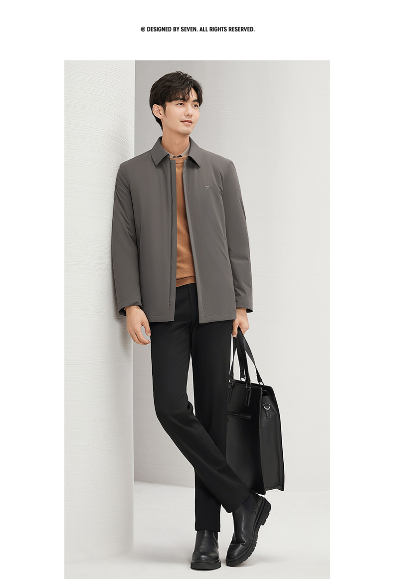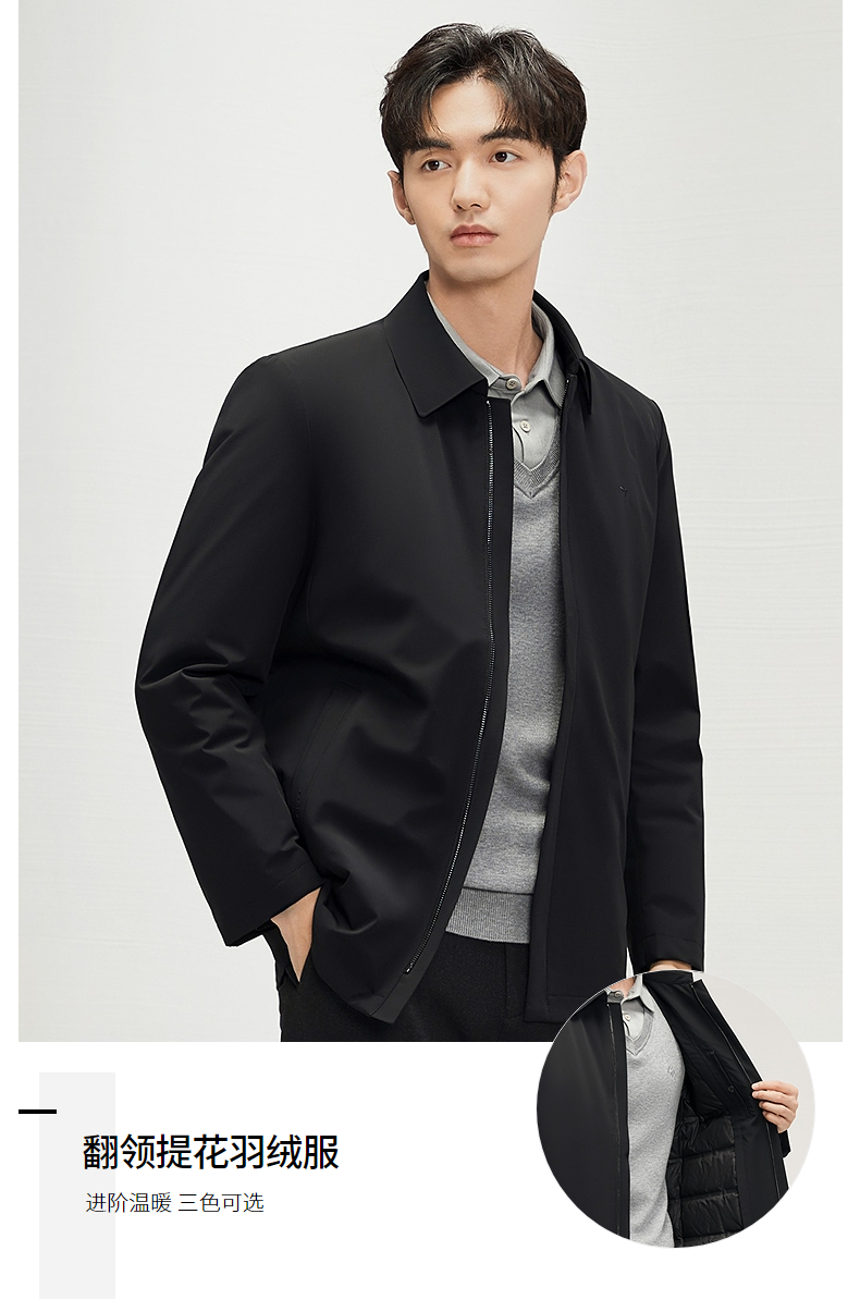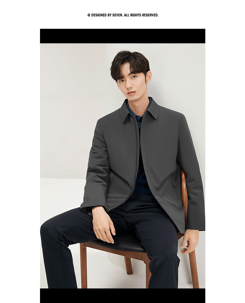 【白鸭绒】柒牌翻领羽绒服男2024冬季新品暗格纹时尚休闲保暖外套 127E70250