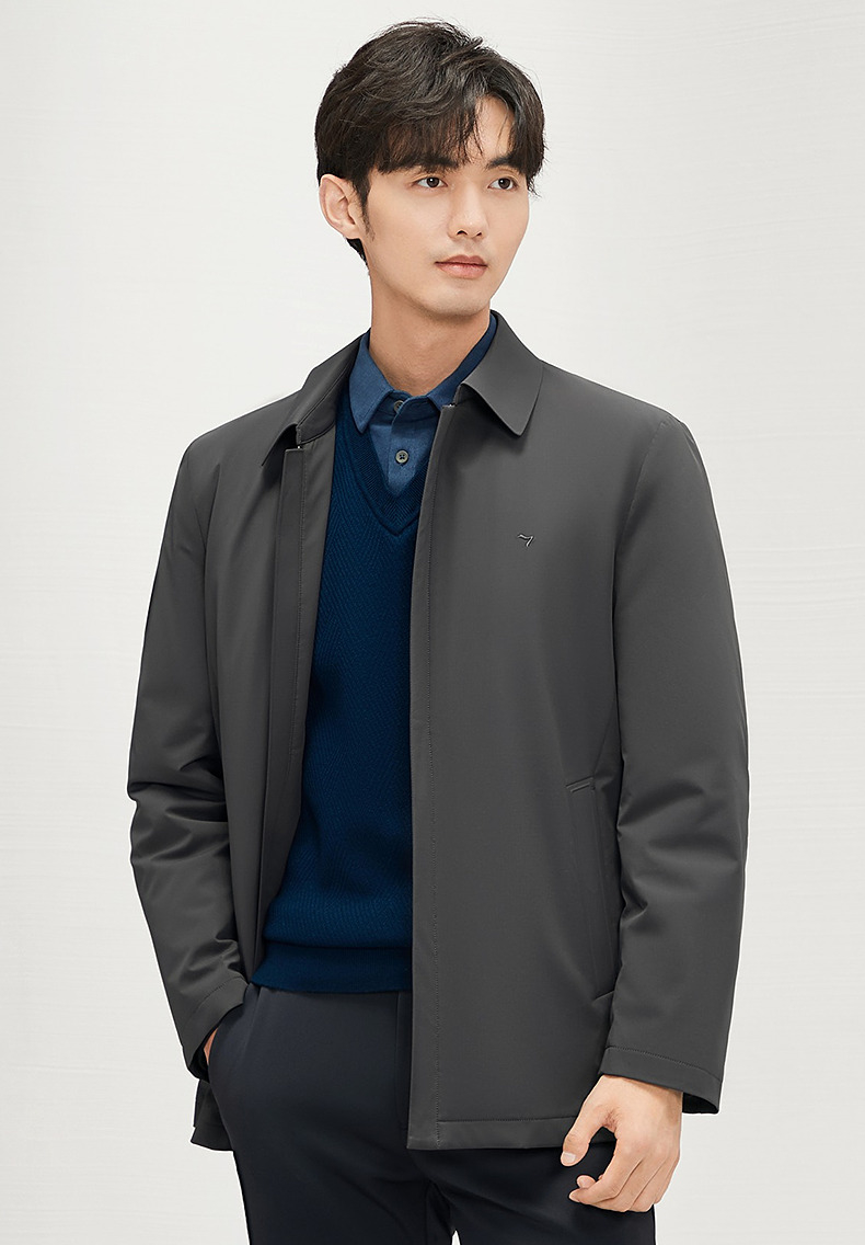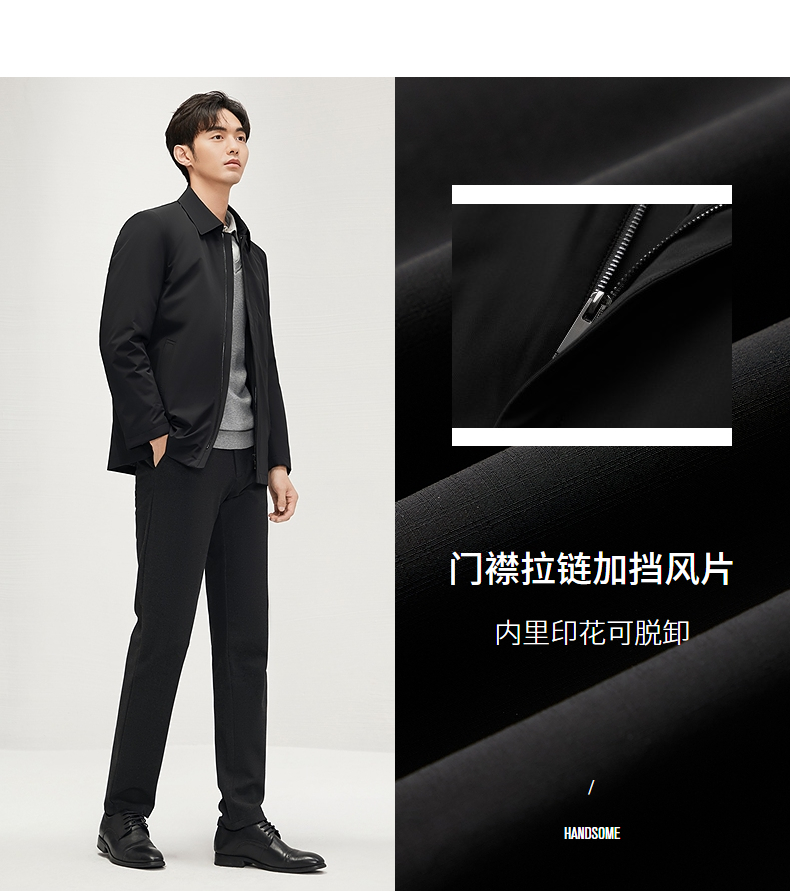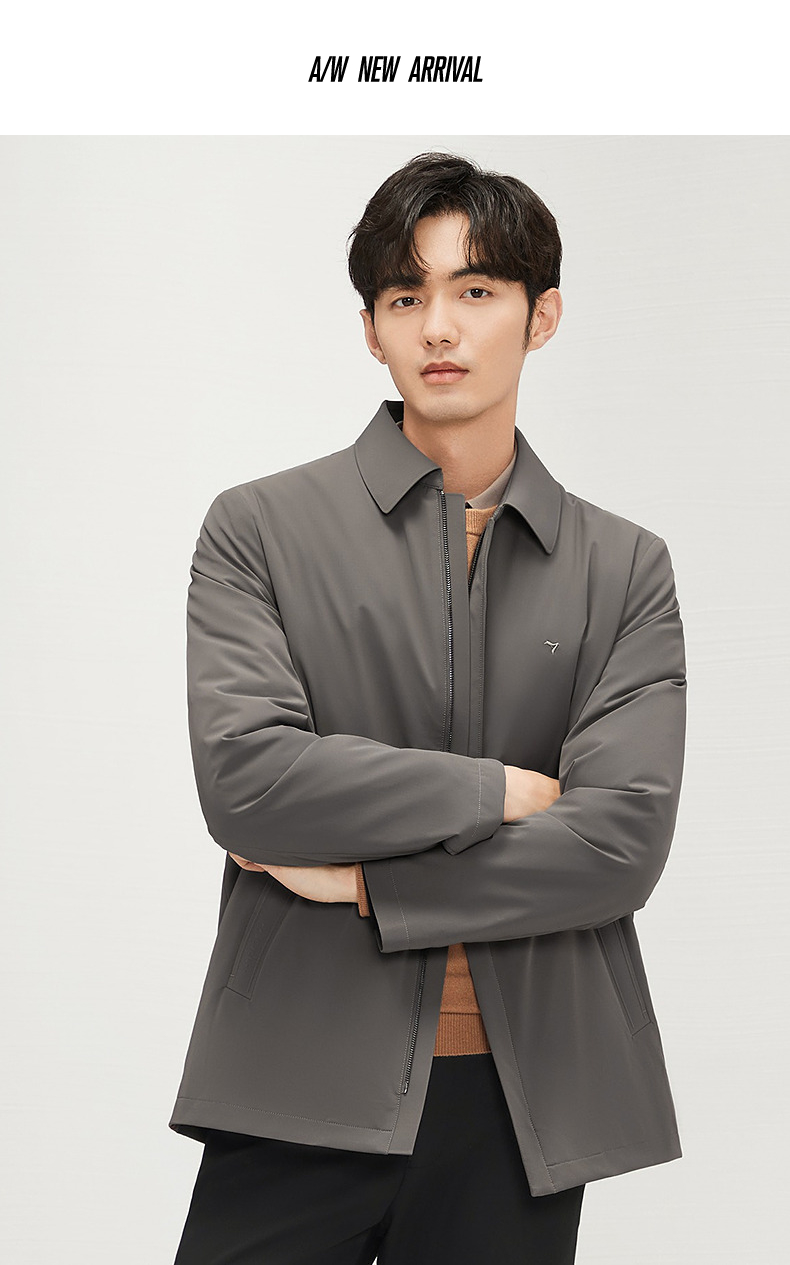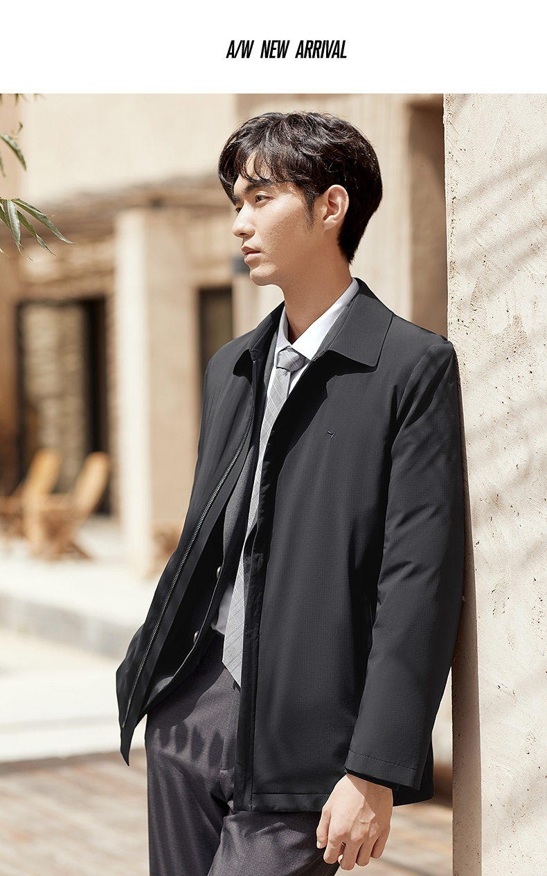 【白鸭绒】柒牌翻领羽绒服男2024冬季新品暗格纹时尚休闲保暖外套 127E70250