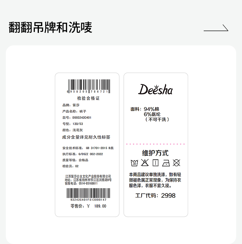 笛莎Deesha 童装女童裤子2026春新款甜美粉标束脚裤