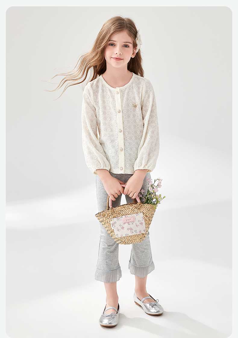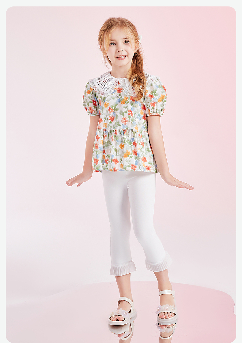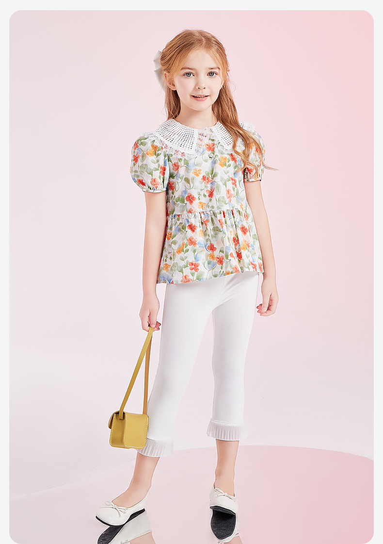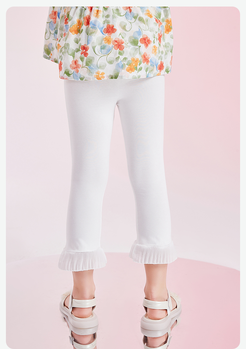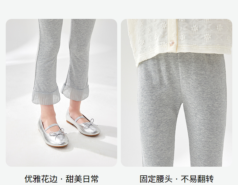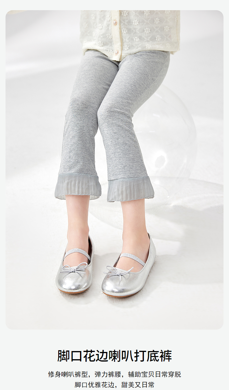 笛莎Deesha 女童裤子2024新款花边喇叭打底裤