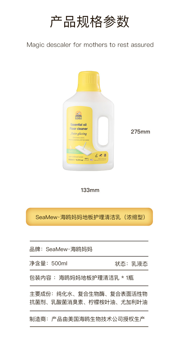 【买即赠地板两用工具!】SeaMew·海鸥妈妈精油地板护理清洁乳 清洁养护二合一地板护理液 拖地擦地清洗剂 木地板地砖大理石通用 500ml/瓶