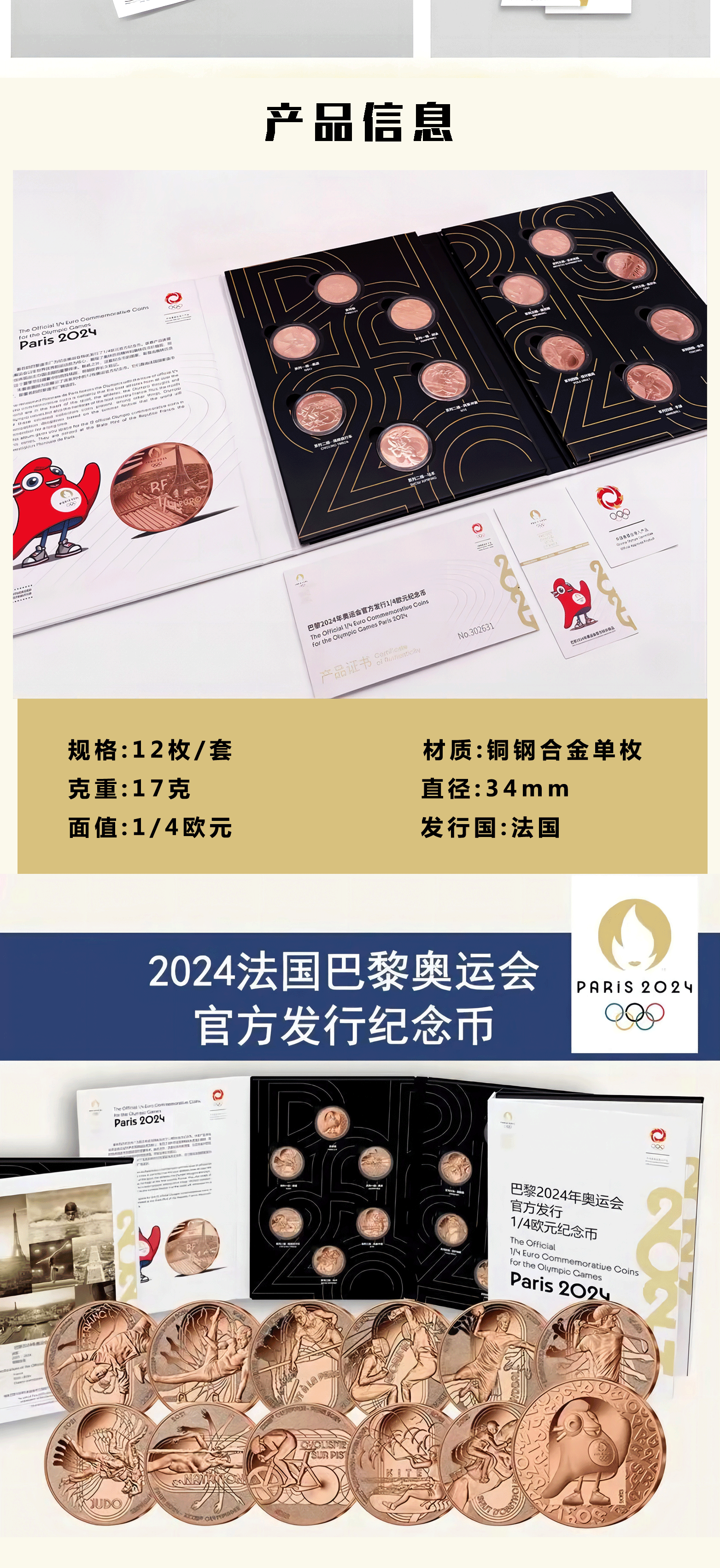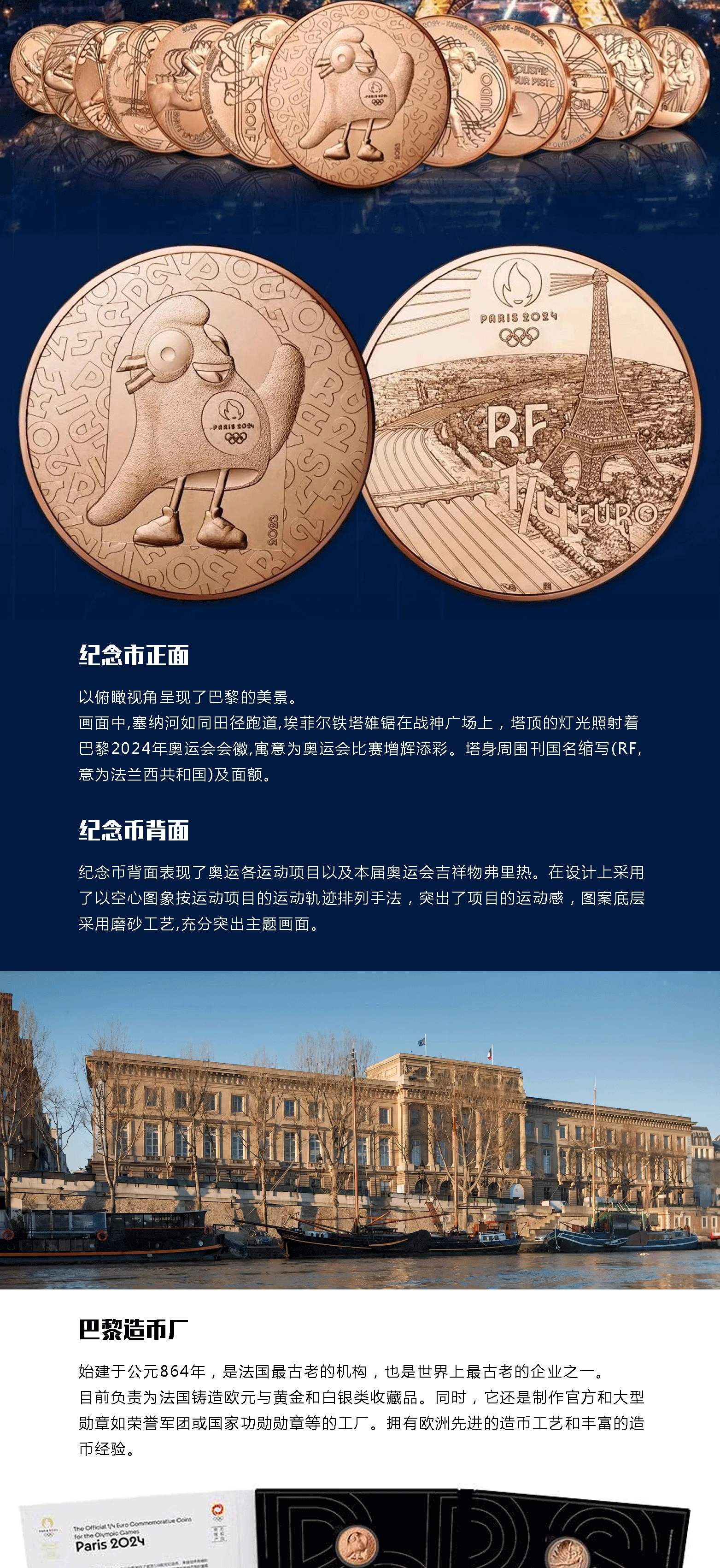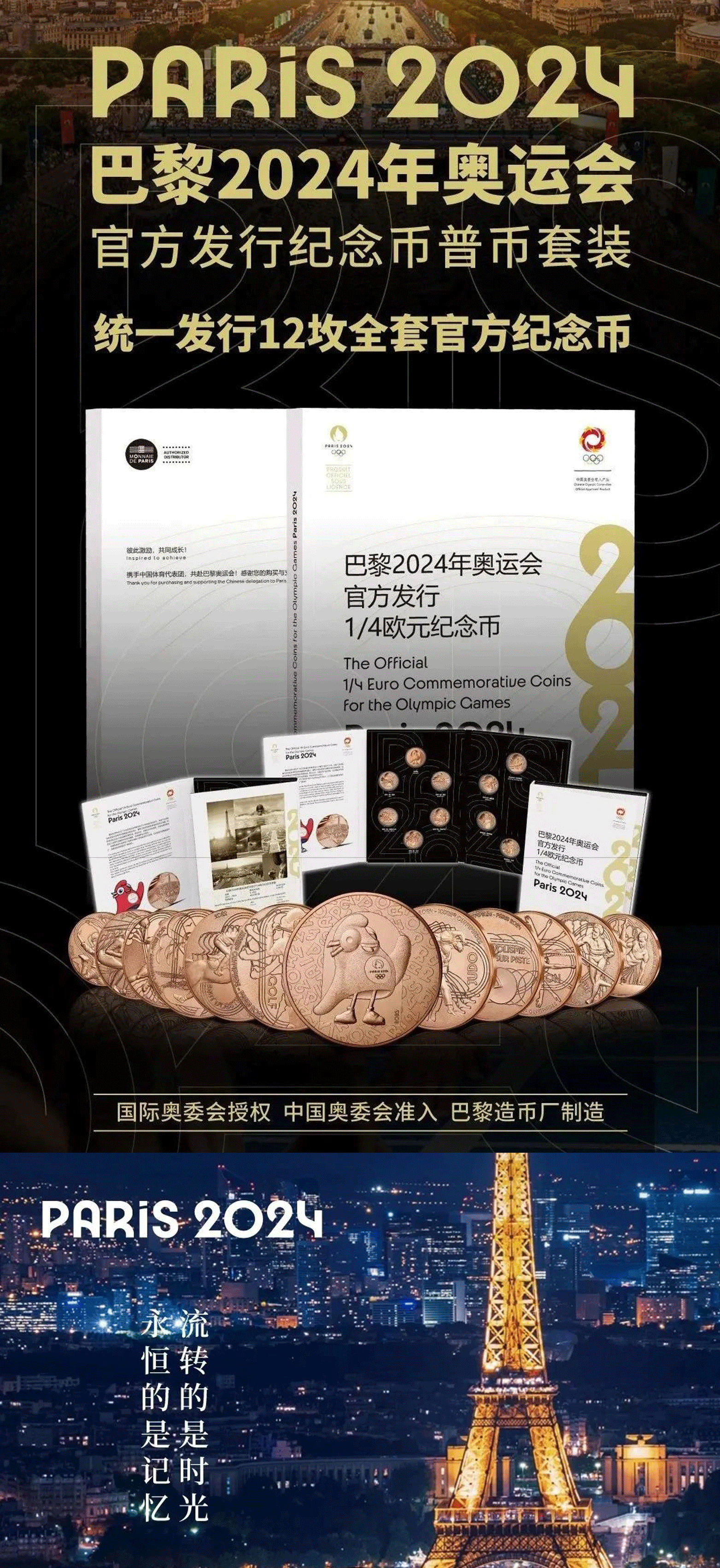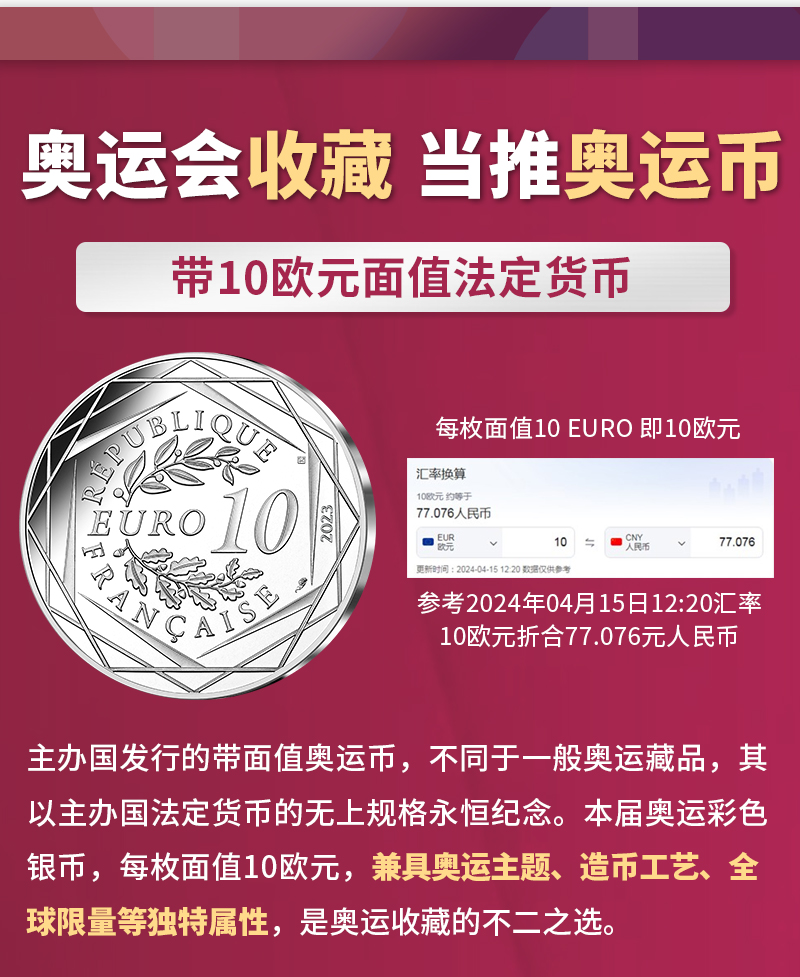 【官方发行】2024巴黎奥运纪念币 一笔国际奥委会审批/中国奥委会特许发行/巴黎造市厂独家铸造