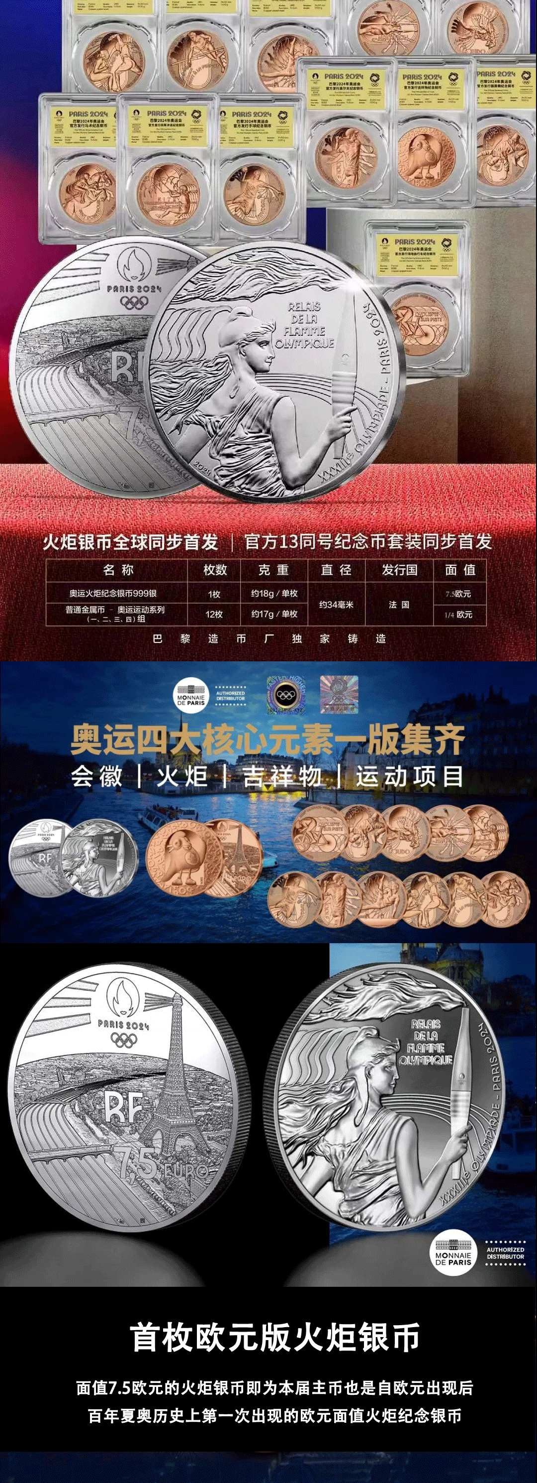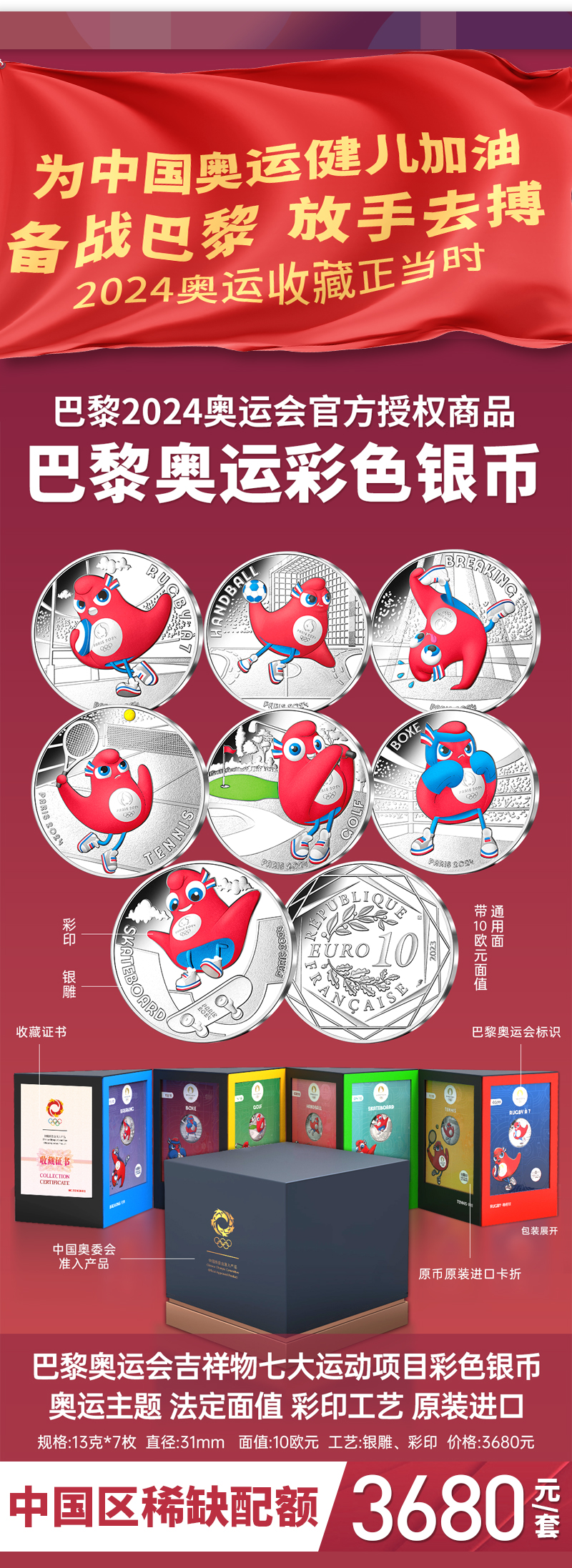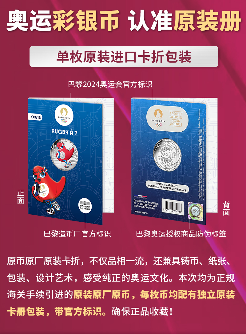 【官方发行】2024巴黎奥运纪念币 一笔国际奥委会审批/中国奥委会特许发行/巴黎造市厂独家铸造
