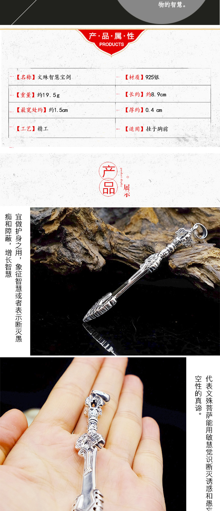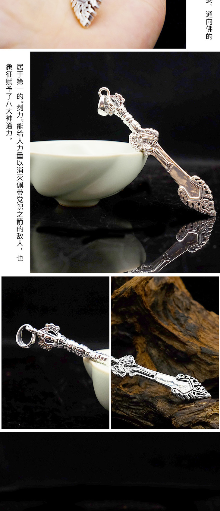 藏传密宗法器 纯银文殊智慧宝剑吊坠挂件文殊菩萨法器男女款