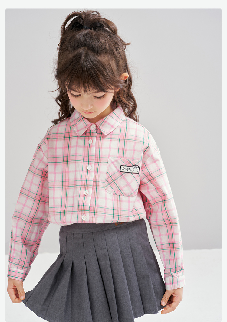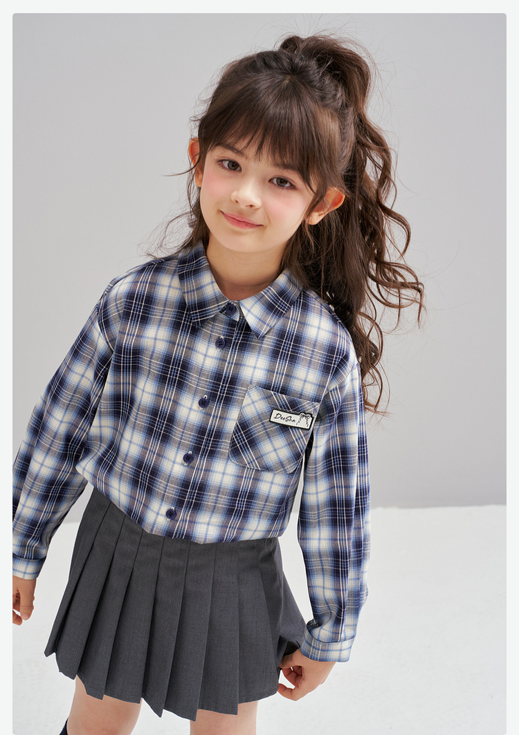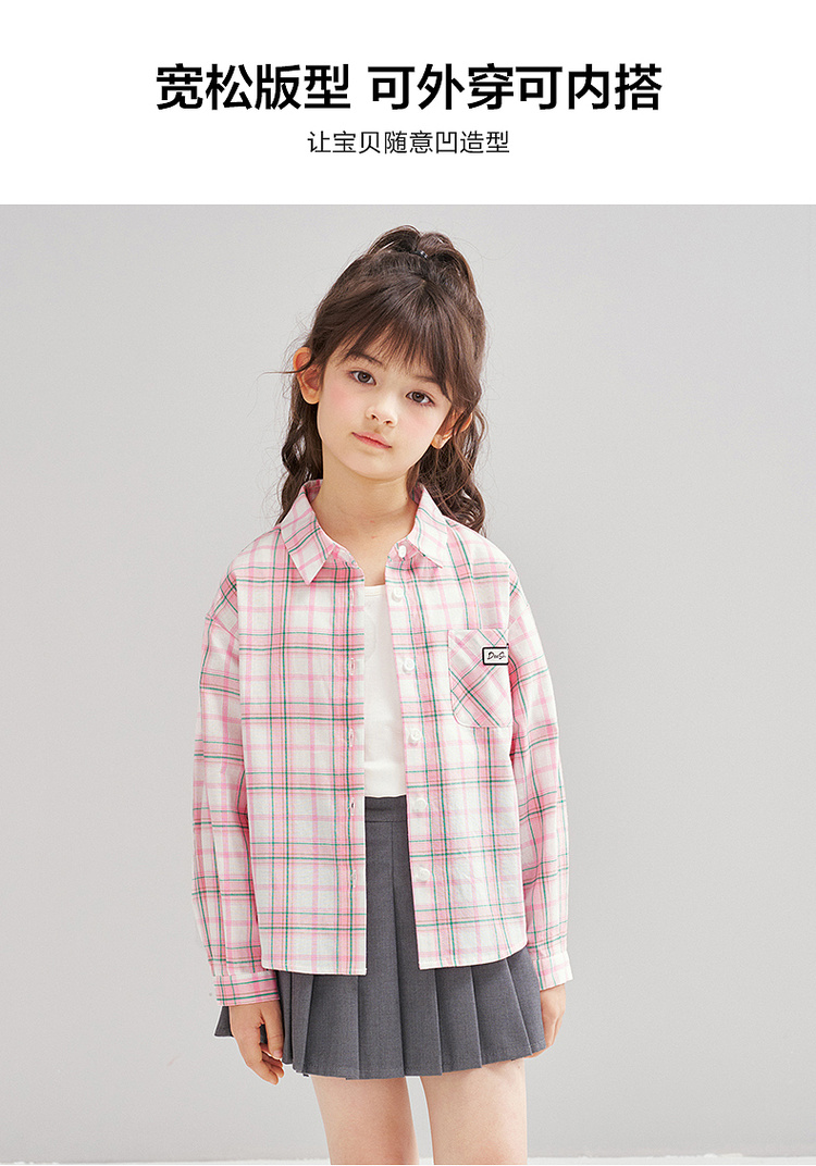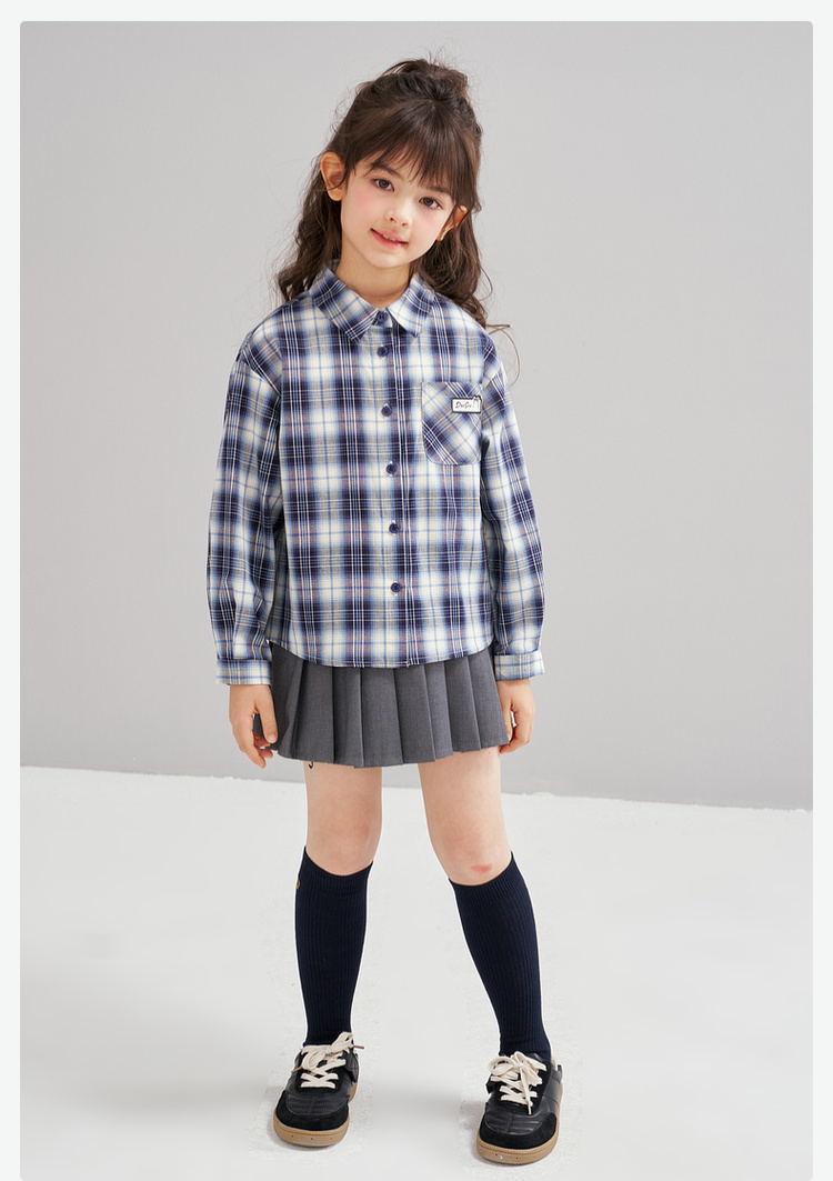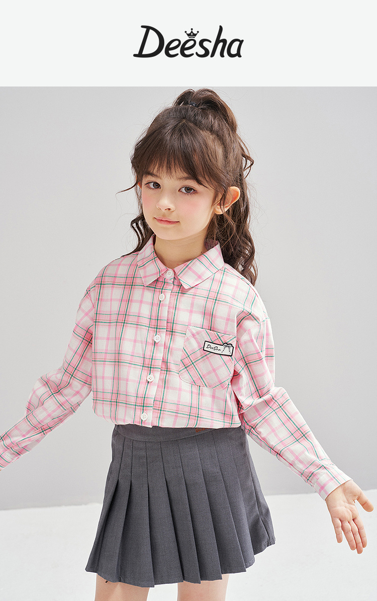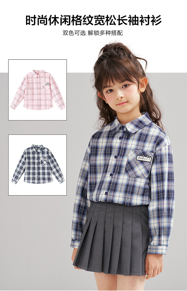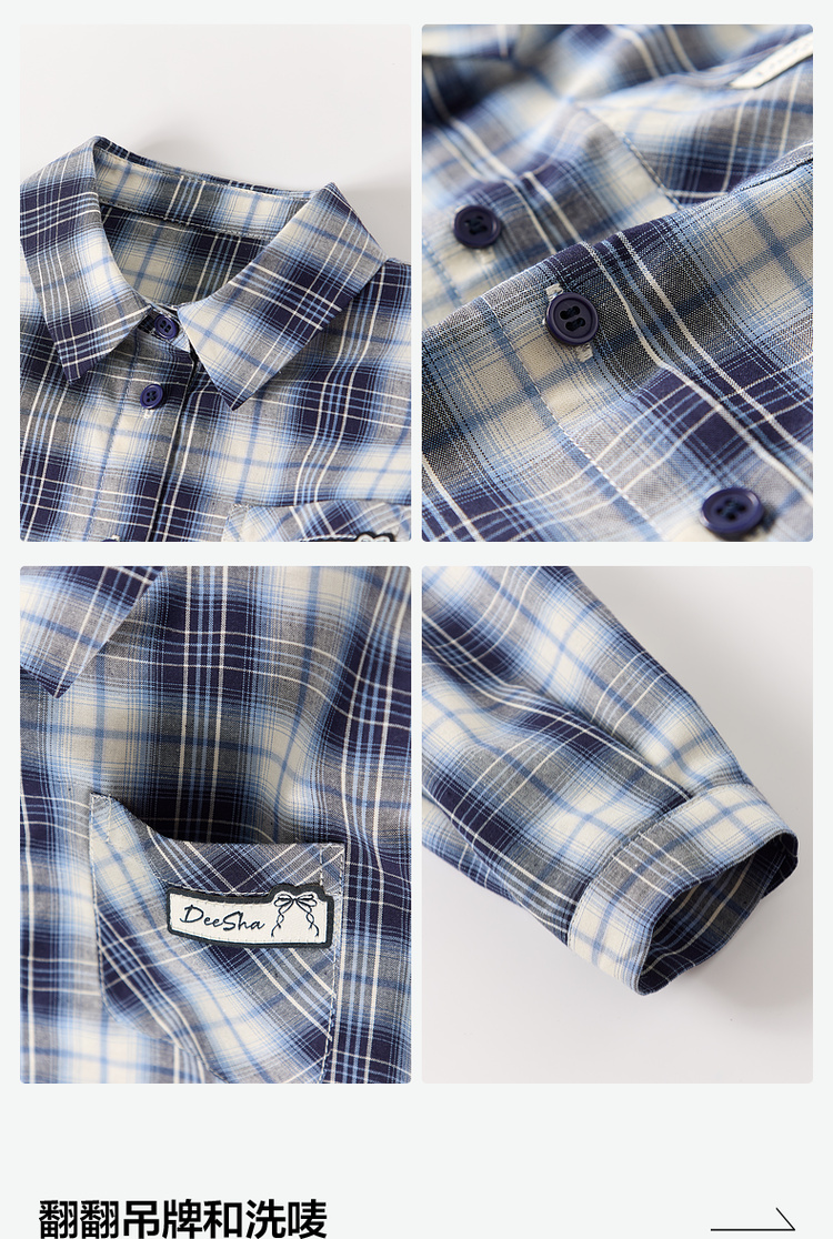 笛莎Deesha 2026春季女童时尚休闲格纹宽松长袖衬衫