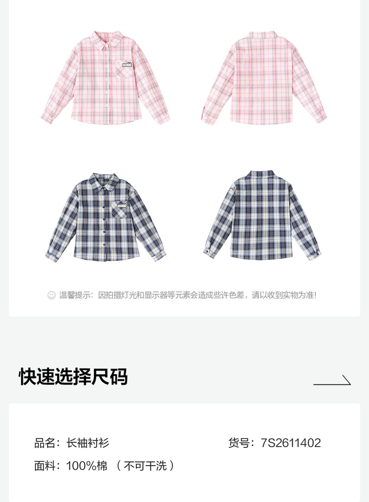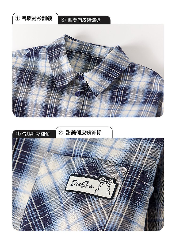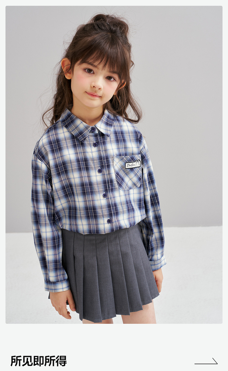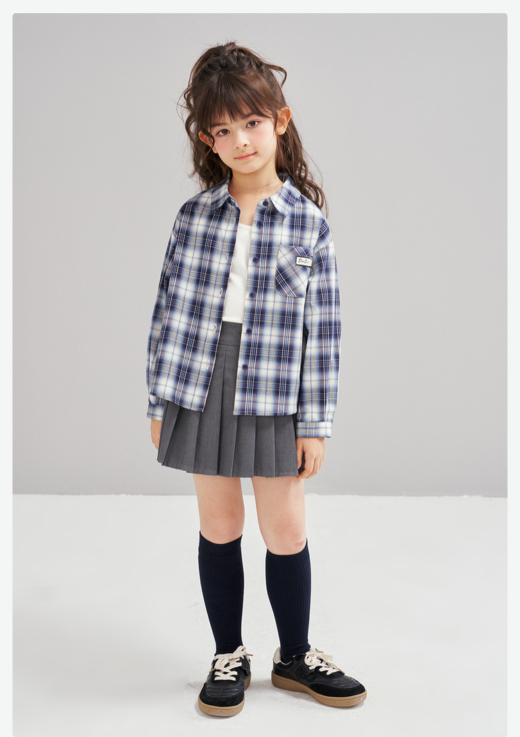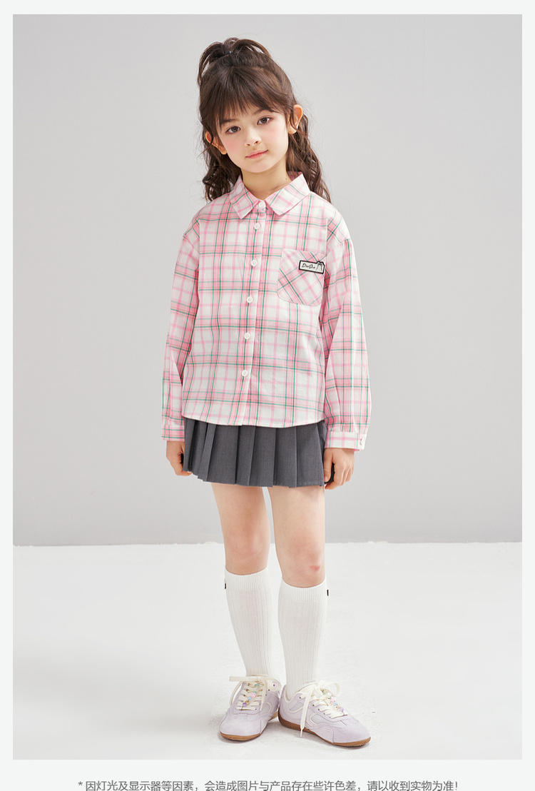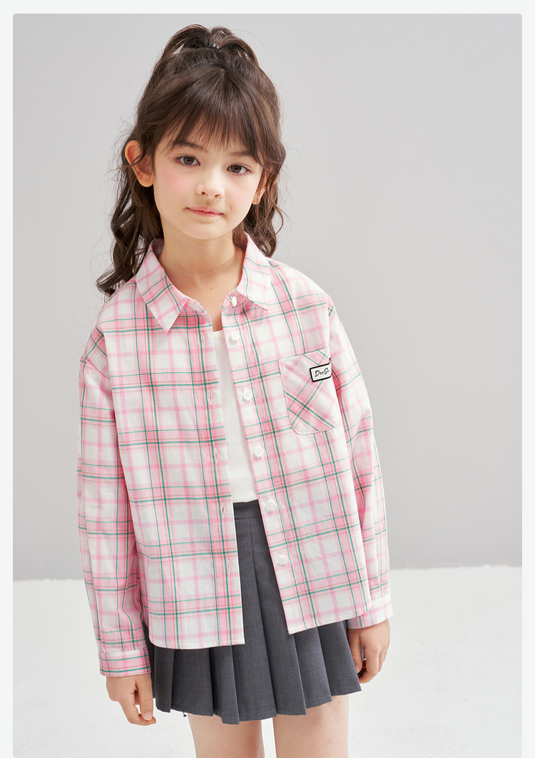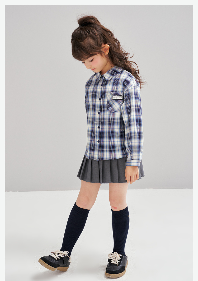 笛莎Deesha 2026春季女童时尚休闲格纹宽松长袖衬衫