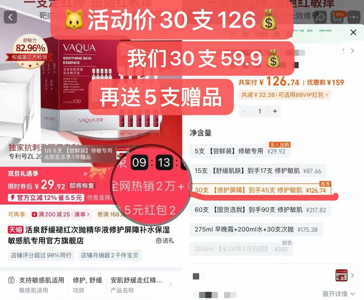 某猫5支活动价就要29.9💰,热销2w+ 我们30支59.9💰,再送5支赠品 立省66.1💰性价比拉满~