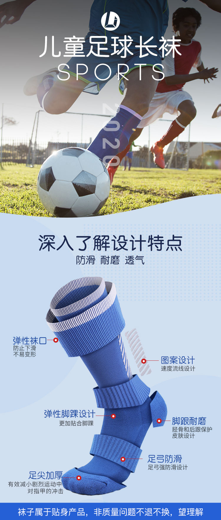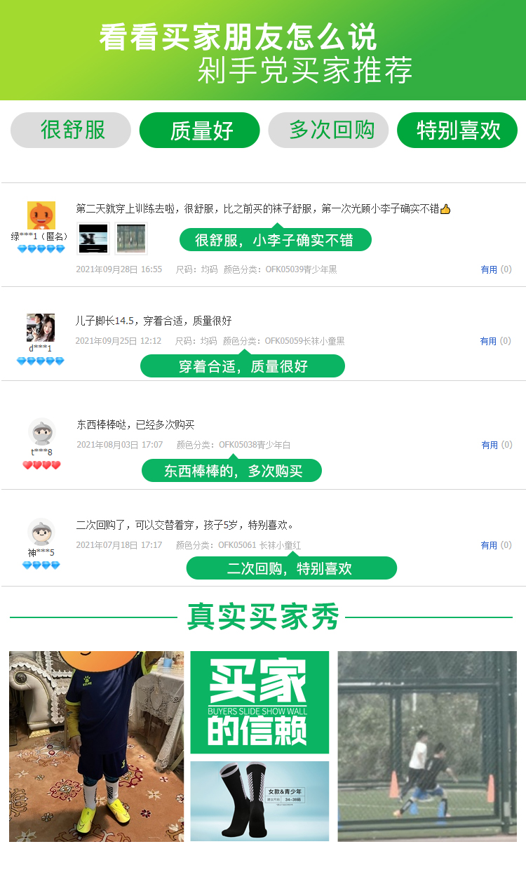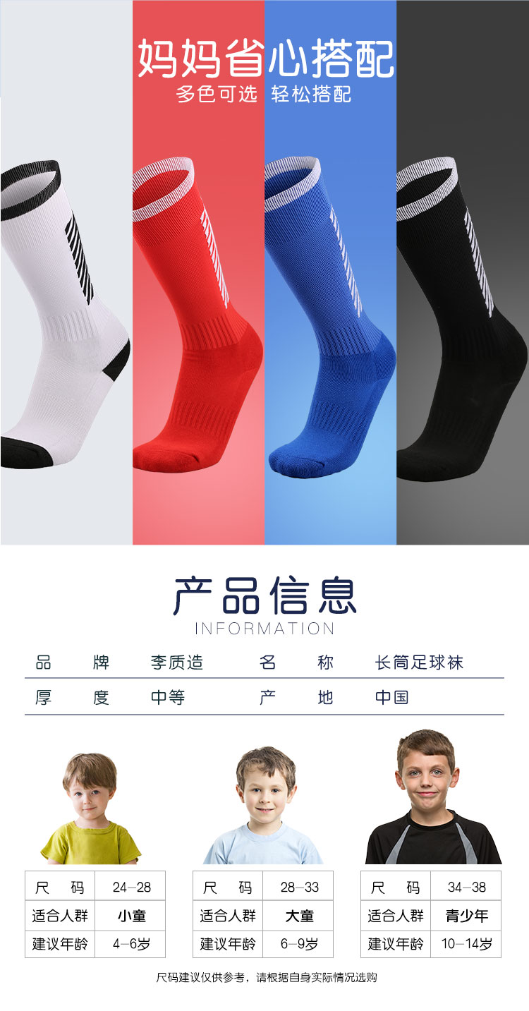 【双11学生认证】李质造舒适透气青少年儿童运动训练长筒足球袜OFK050