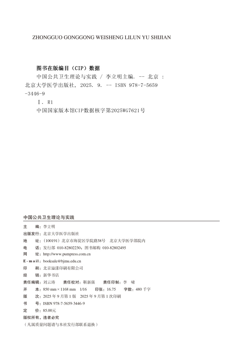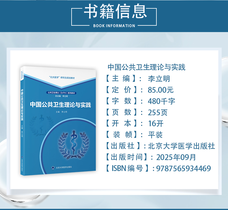 中国公共卫生理论与实践 北大医学研究生规划教材 公共卫生博士(DrPH)系列教材 李立明 主编 9787565934469北京大学医学出版社