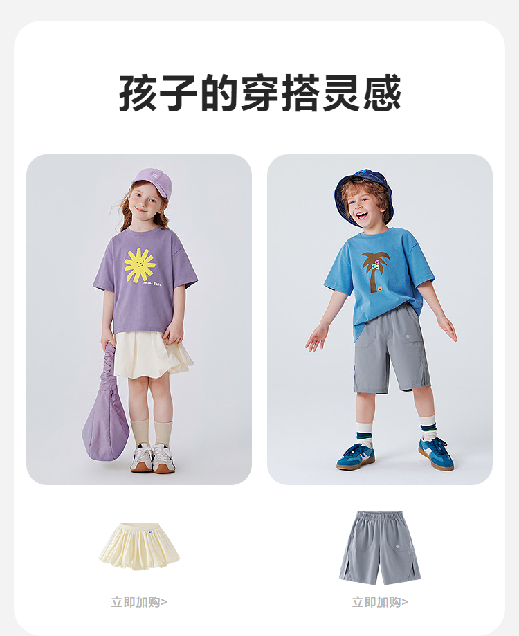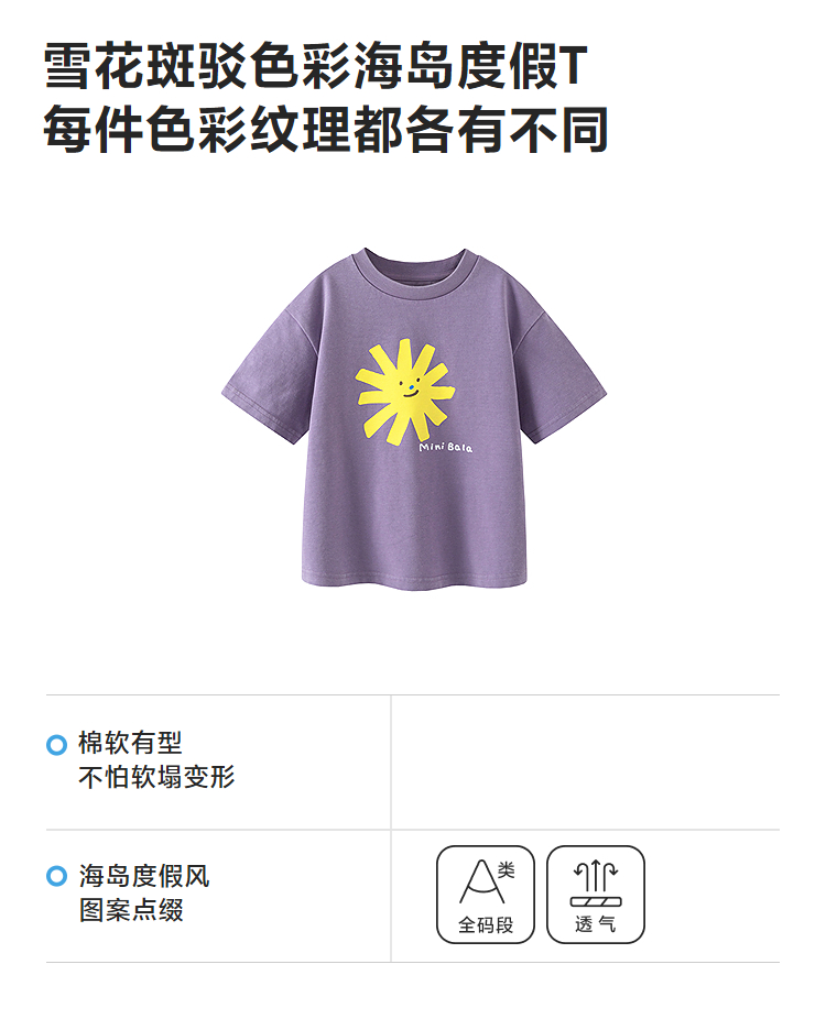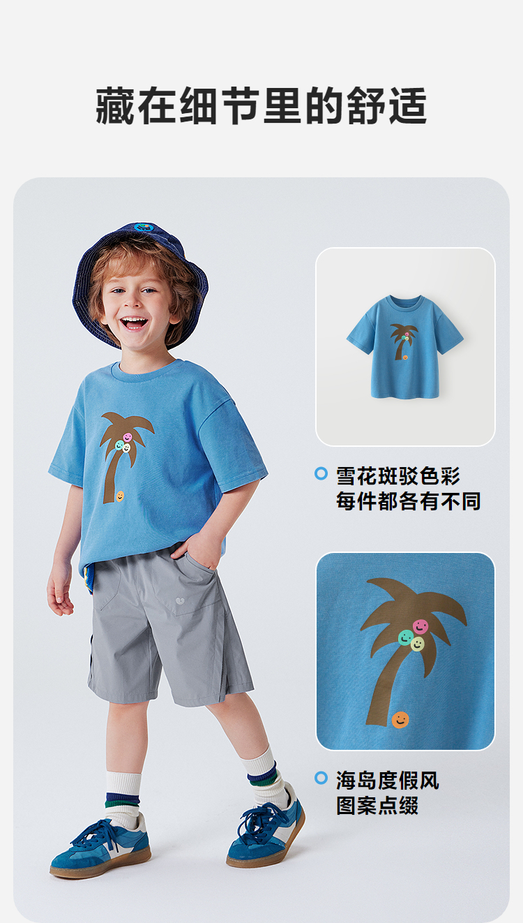 迷你巴拉巴拉男女童短袖T恤复古海岛度假风棉柔上衣2026夏季新款