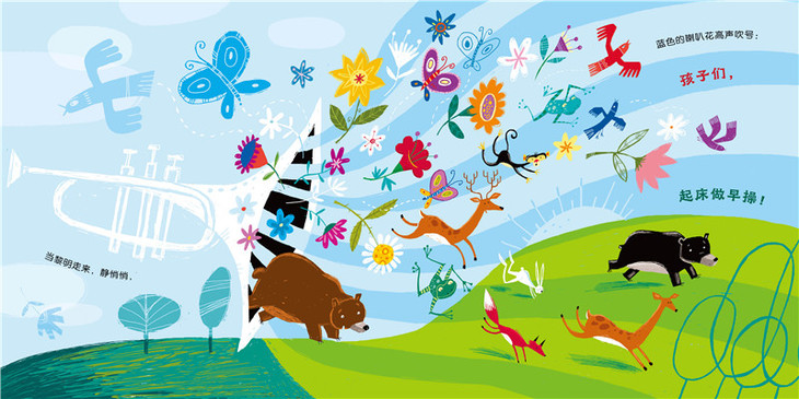 作家高洪波先生用歌谣体的诗文,运用大量的动植物形象,生动地刻画出森林中小动物们一天的生活。孩子读后,会了解一些关于花朵和时间的知识,会渐渐懂得时间观念,学会珍惜眼前的时光。阿根廷画家赫克托·博拉斯卡根据自己对诗中意象的深入理解,为不同时间段的动植物设计出丰富多变的表情,并用明亮的色彩、光影和线条放大了诗歌的美丽。这本诗意图画书读起来琅琅上口,在诗韵画境中,将守时、规律生活的好习惯传递给即将离开家庭、走入学校的孩子。