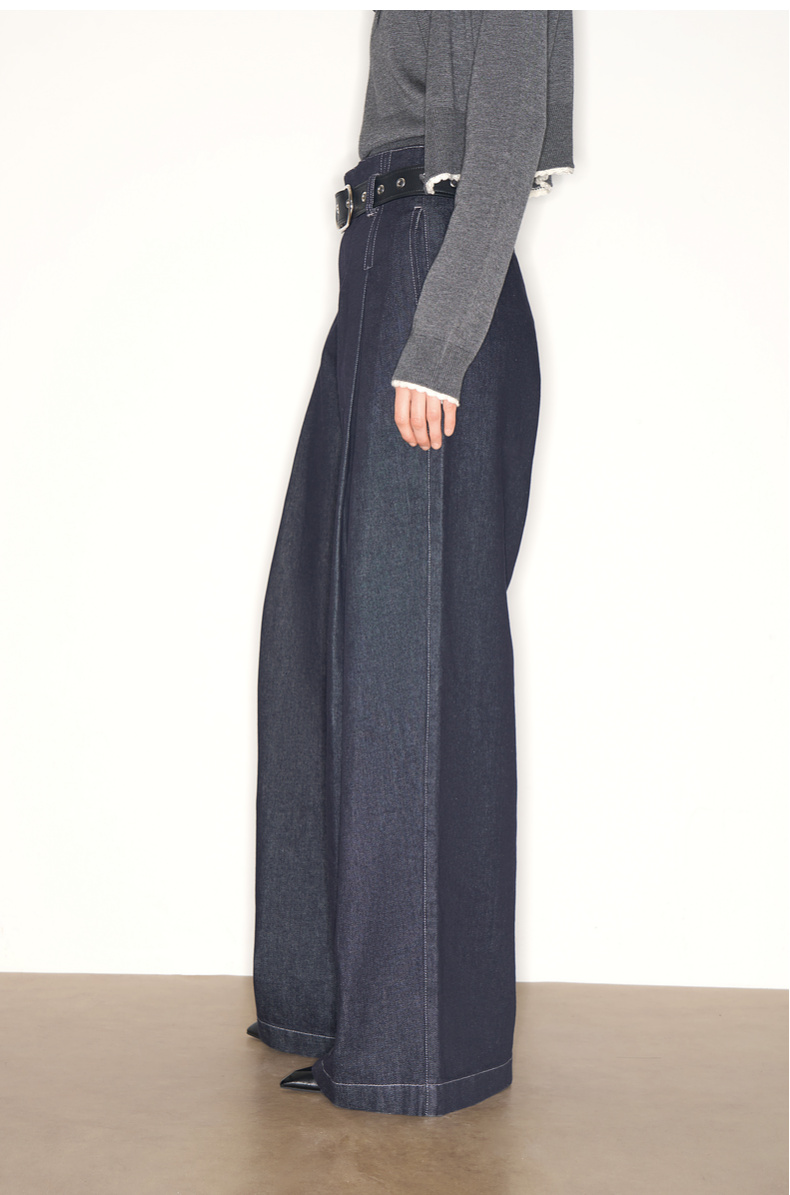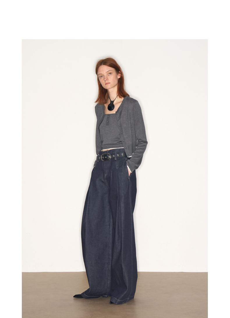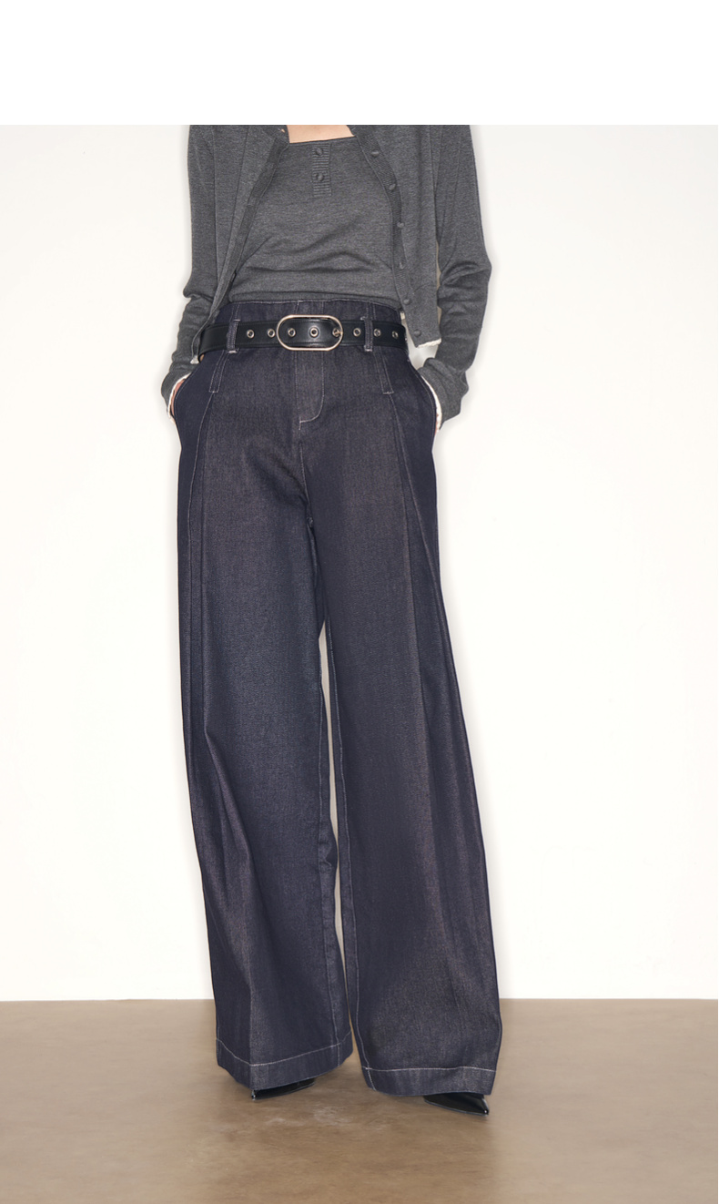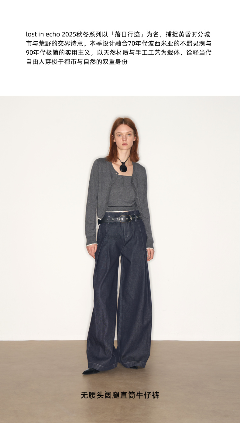 lost in echo2025早秋新款休闲低腰无腰头阔腿显瘦及地直筒牛仔裤