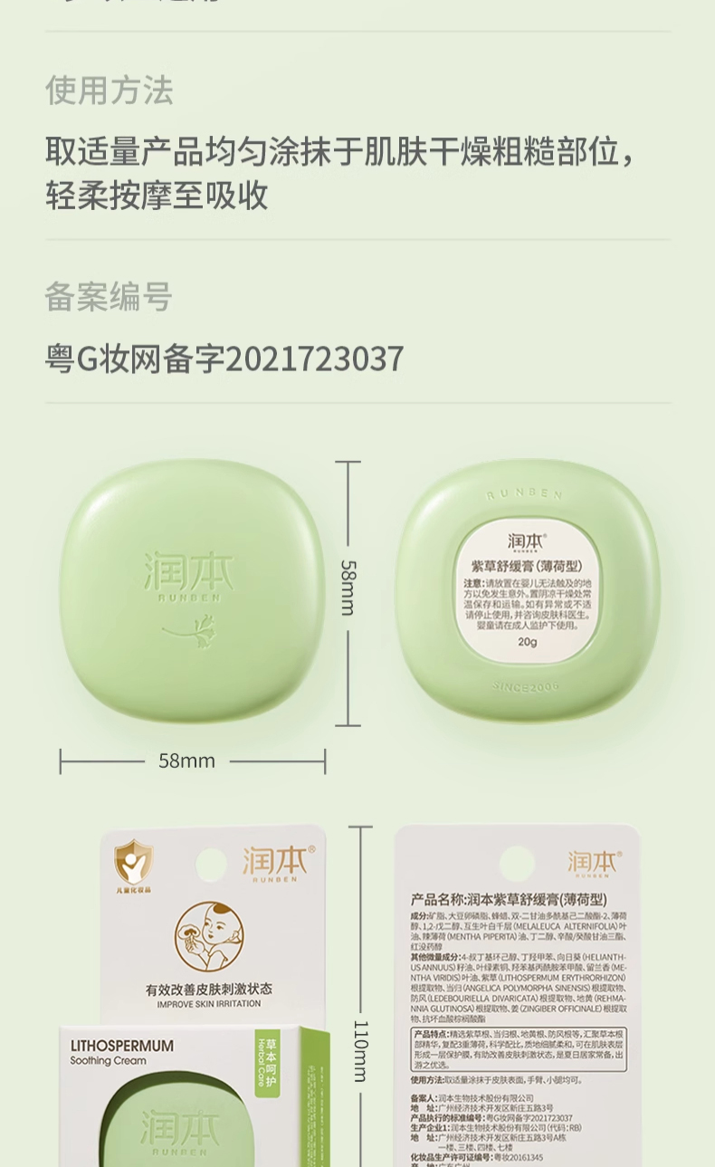 驱蚊专区-润本紫草修护膏20g (904016)