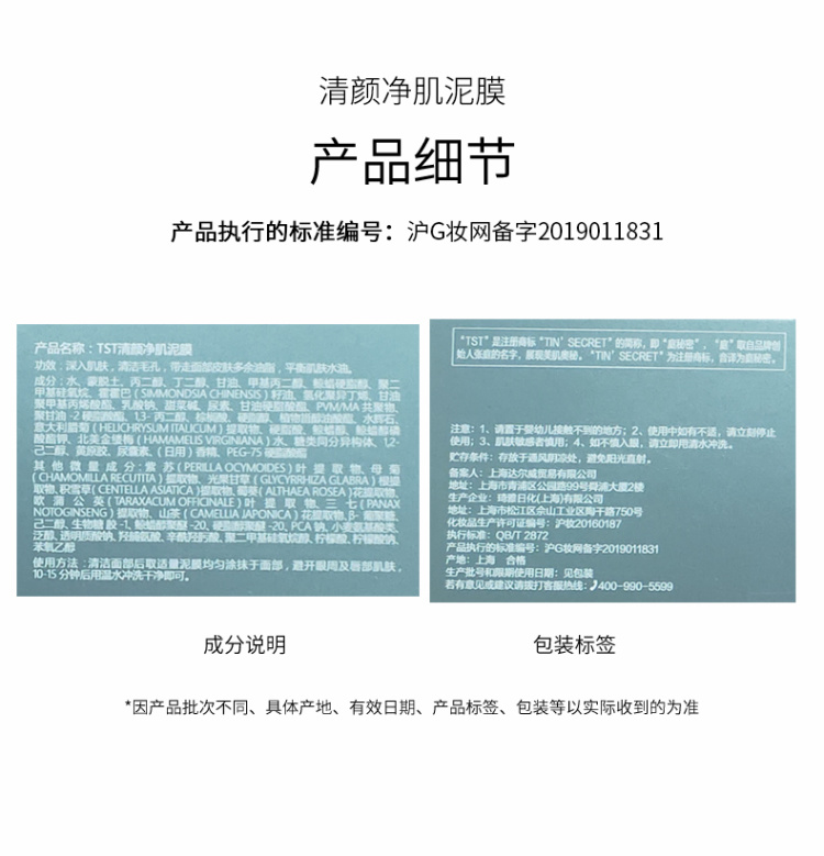 【爆款】TST清颜净肌泥膜100g *3
