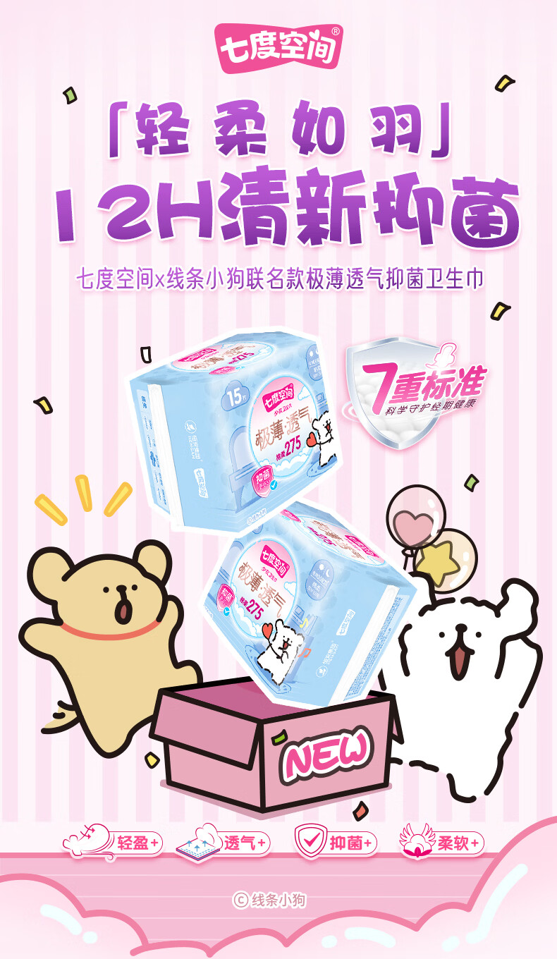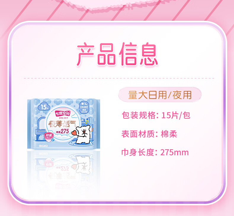 七度空间少女系列极薄透气棉柔夜卫生巾275mm 15片